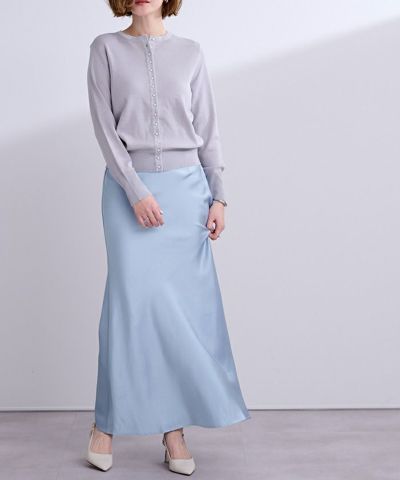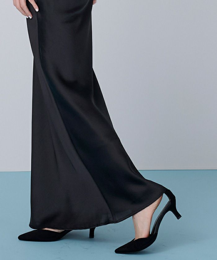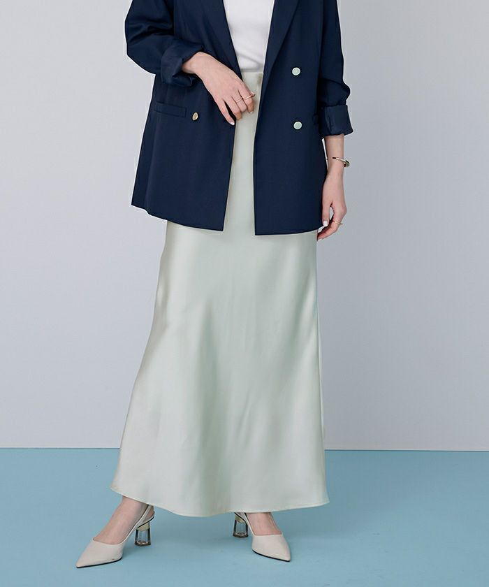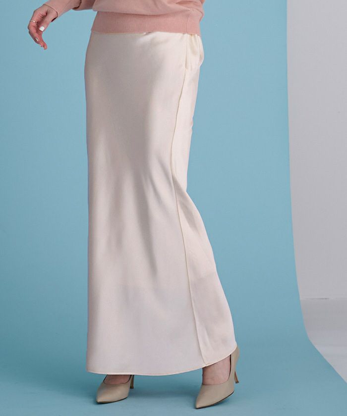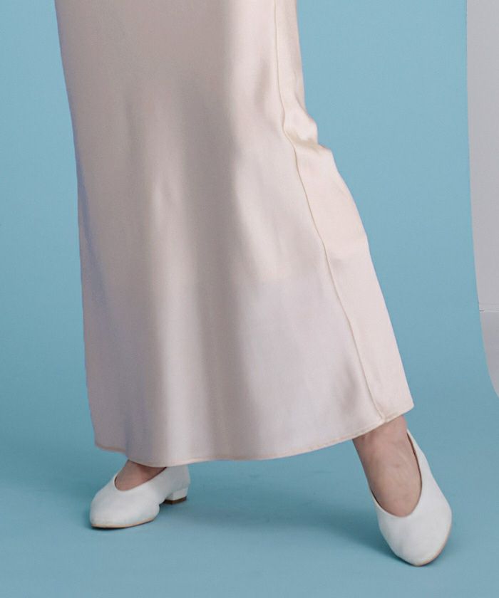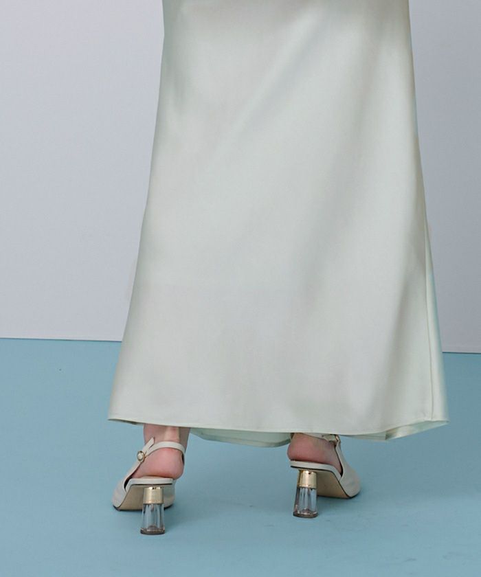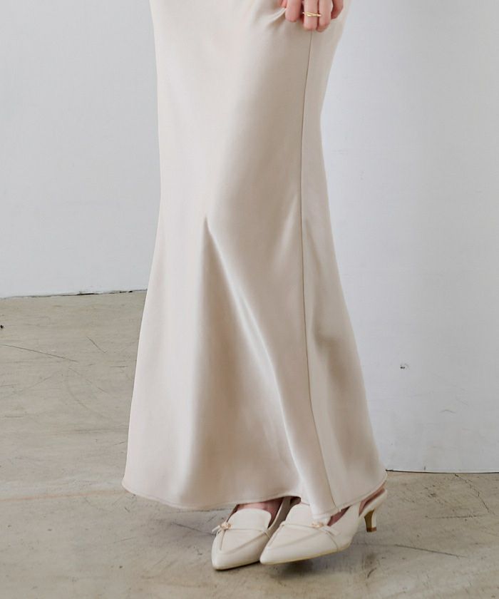 ヒップラインから綺麗なマーメイドラインを描くサテンマキシスカート。