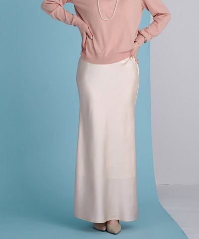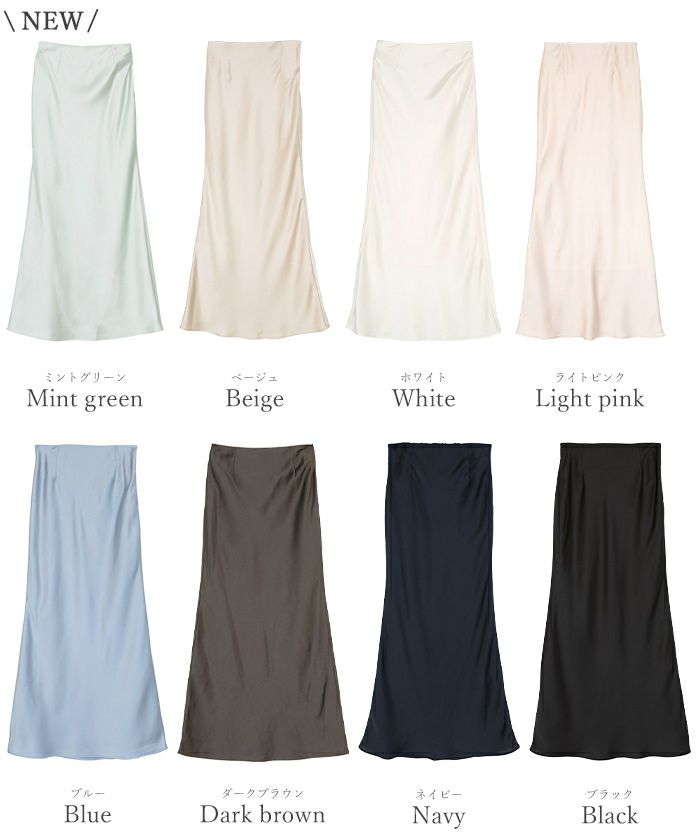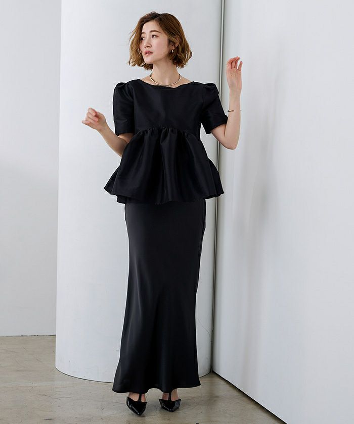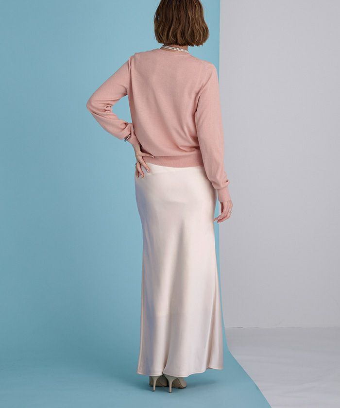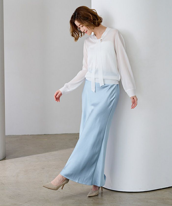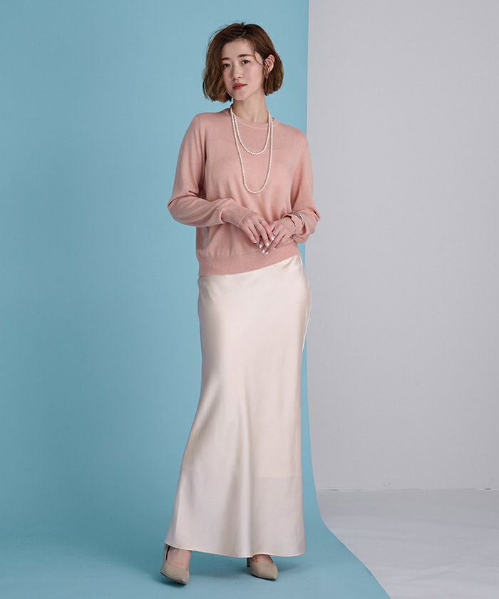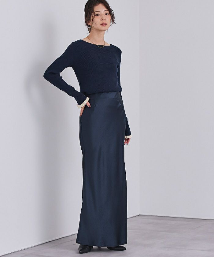 ヒップラインから綺麗なマーメイドラインを描くサテンマキシスカート。