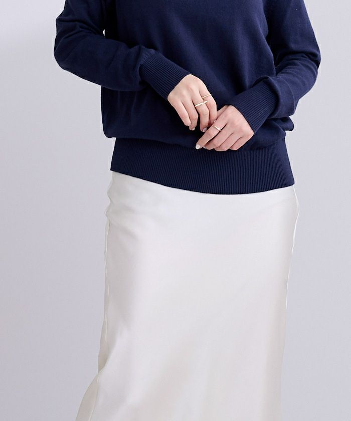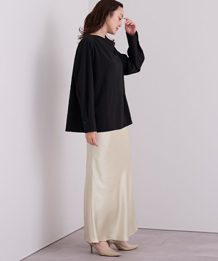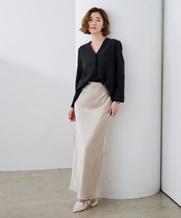 サテンならではの光沢感が上品で、きれいめな印象に仕上がります。