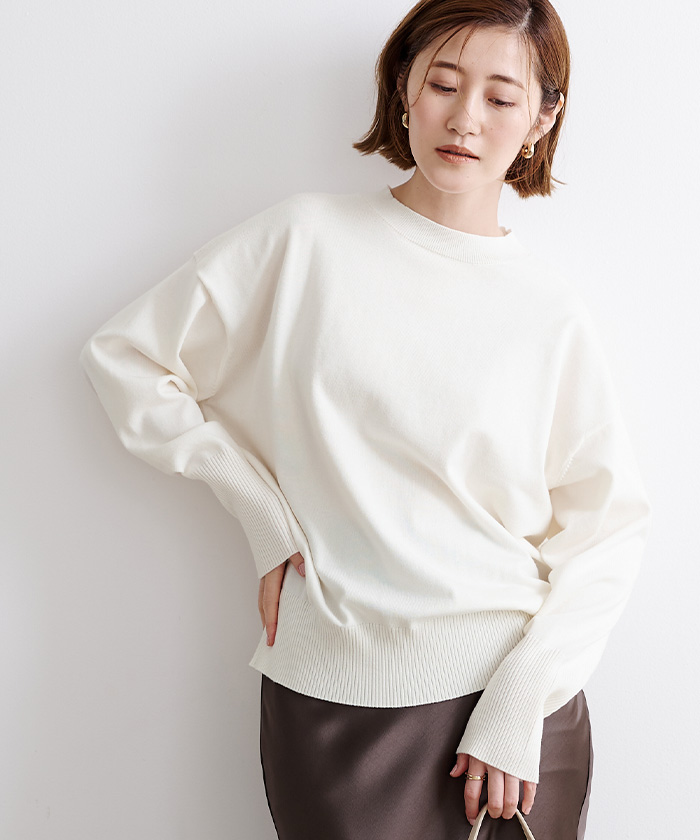 コットンウールブレンドで秋口から冬まで活躍するハイネックニット。