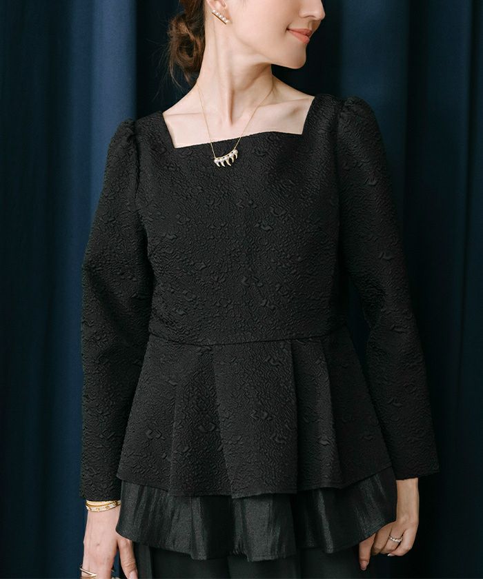 華やかなティアードのふくれジャガードペプラムトップス