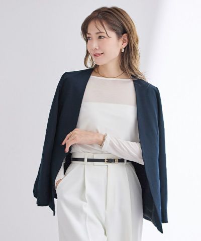 ・シルエットが綺麗なノーカラージャケット