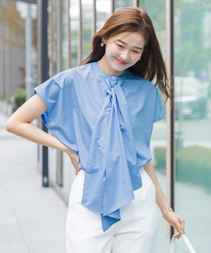 他の画像を見る 【洗える】【期間限定★2500均一】 バンドカラーデザインボウタイオーバーサイズブラウス【メール便可/80】 定価 ¥ 4,389 のところ 価格 ¥ 2,500 税込 お気に入りに登録する
