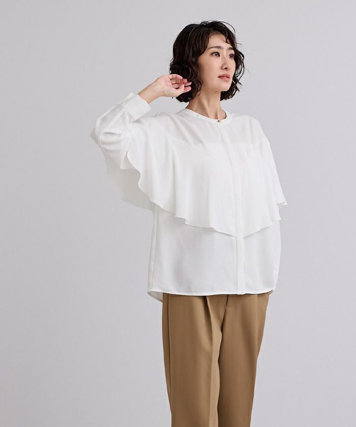 他の画像を見る 【新作★期間限定10%OFF★13日11:00~23日10:59】【星玲奈さんコラボアイテム】【洗える】 バンドカラーキャンディスリーブブラウス 定価 ¥ 6,589 のところ 価格 ¥ 5,930 税込 販売期間 2026/03/13 11:00 〜 2026/03/23 10:59 お気に入りに登録する