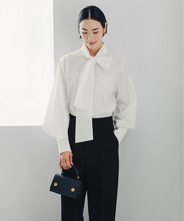 同素材シリーズのブラウスやジャケットと合わせてセットアップで着用して頂くのもおすすめです。