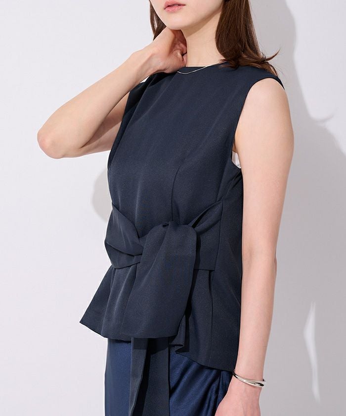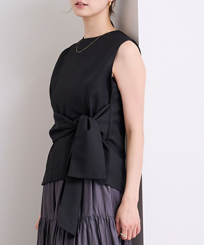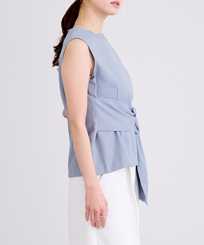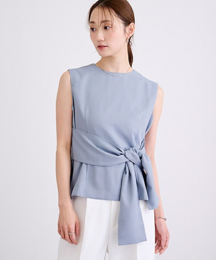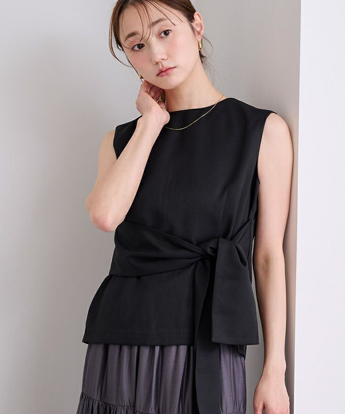 ウエストシェイプが女性らしさを演出するノースリーブトップス