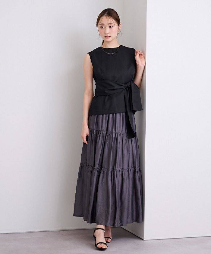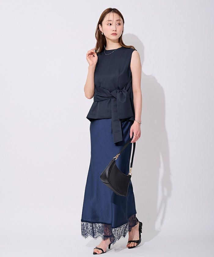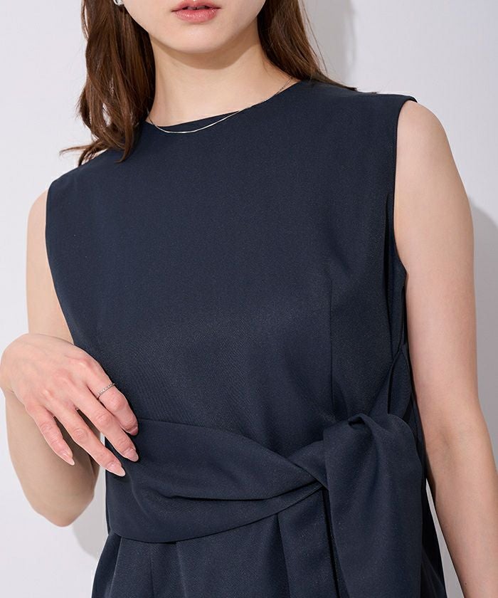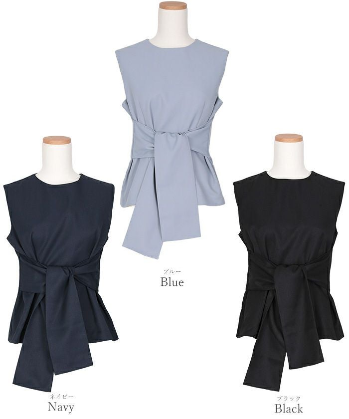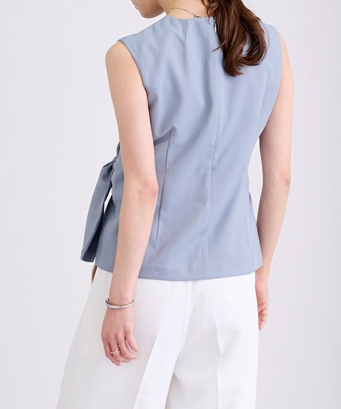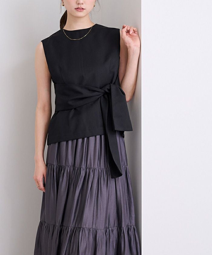 ウエストシェイプが女性らしさを演出するノースリーブトップス