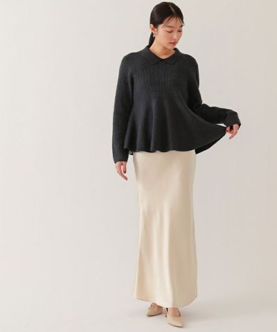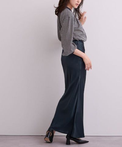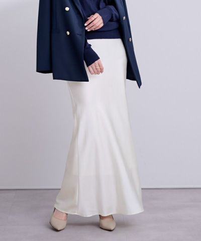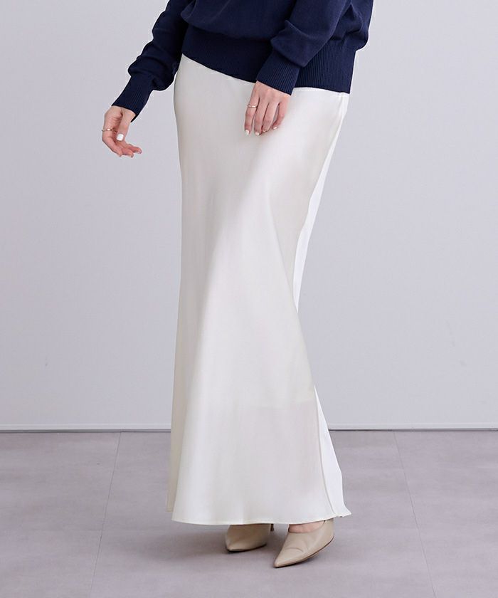 ヒップラインから綺麗なマーメイドラインを描くサテンマキシスカート。