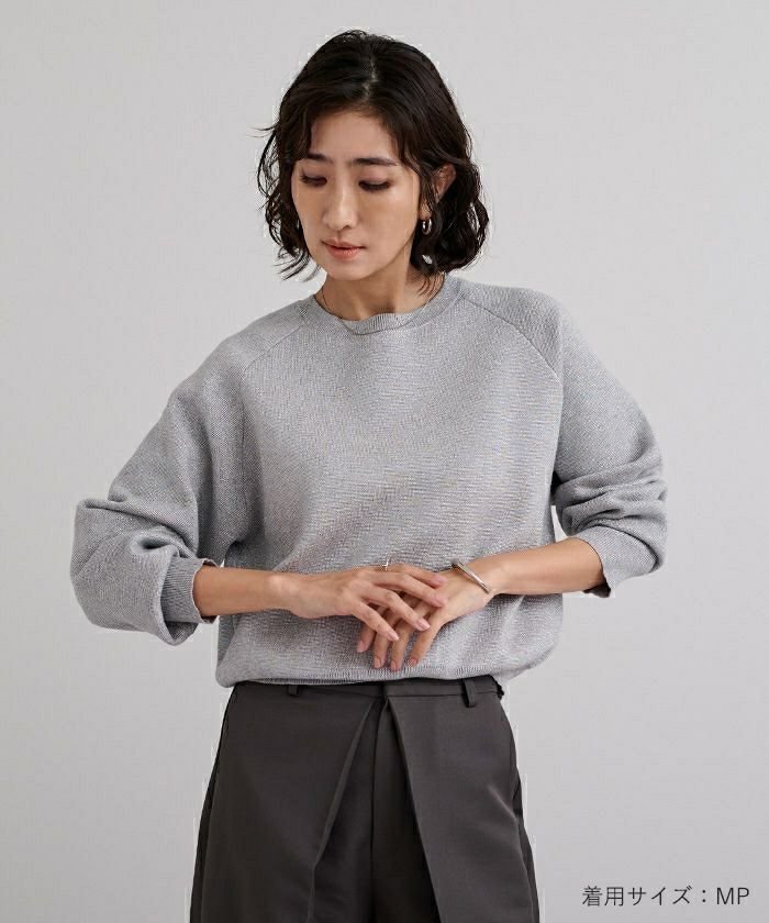大人カジュアルスタイルにぴったりなスウェット見えするニットトップス。
