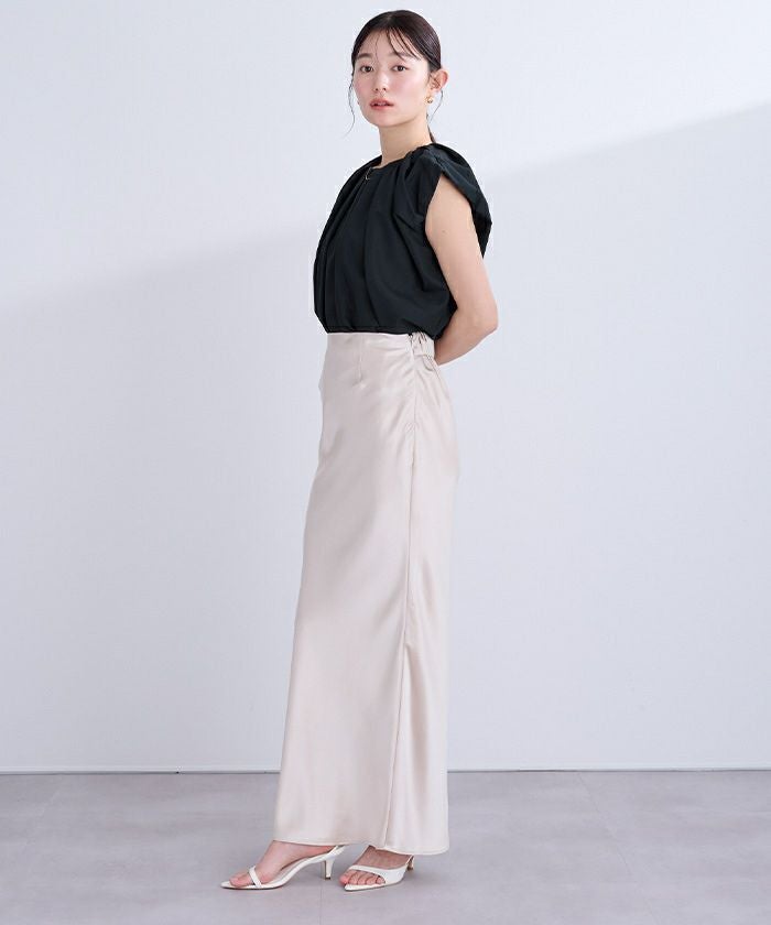 フレンチスリーブで肩に程良いボリューム感があるので、二の腕カバーも叶えます。