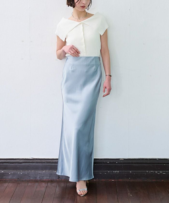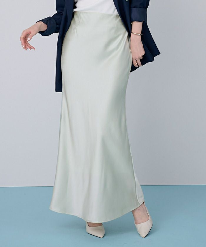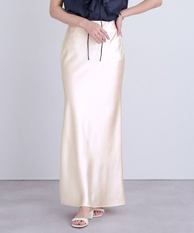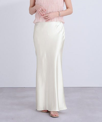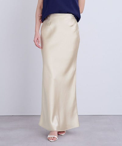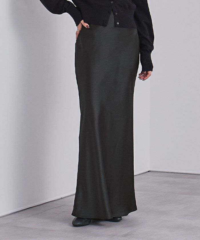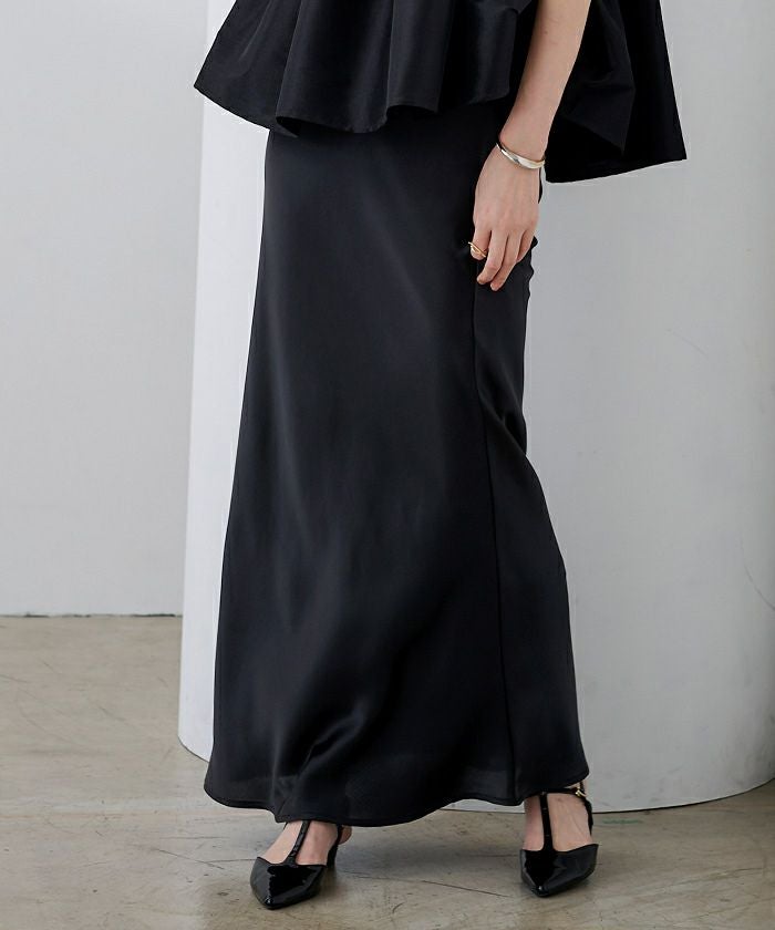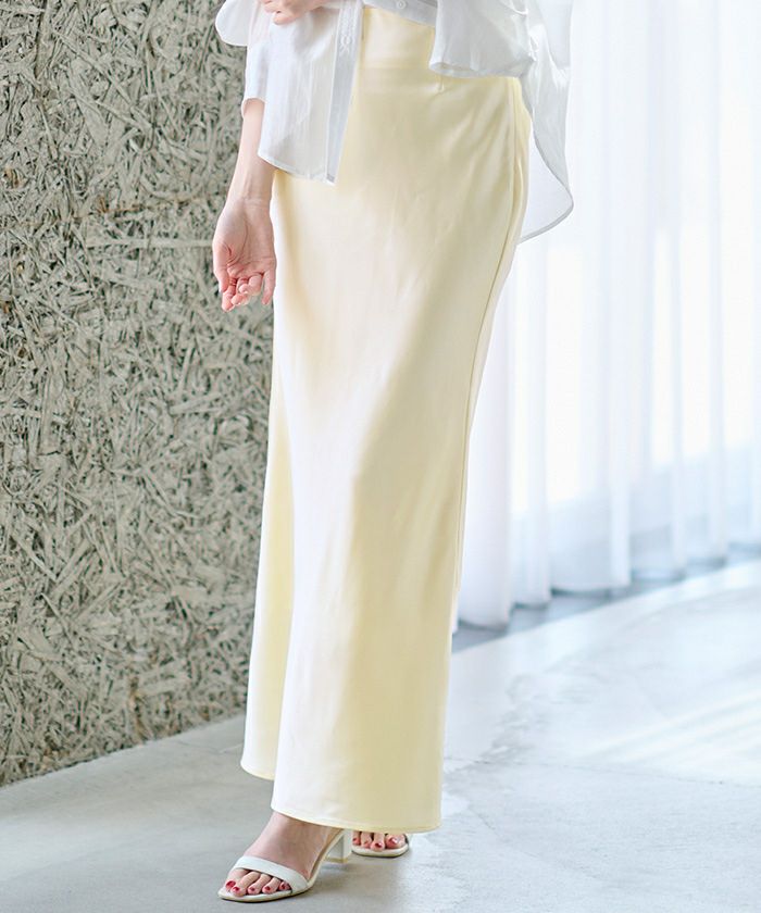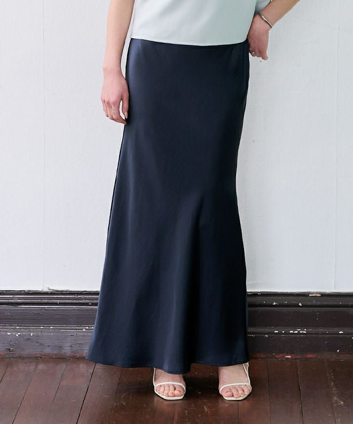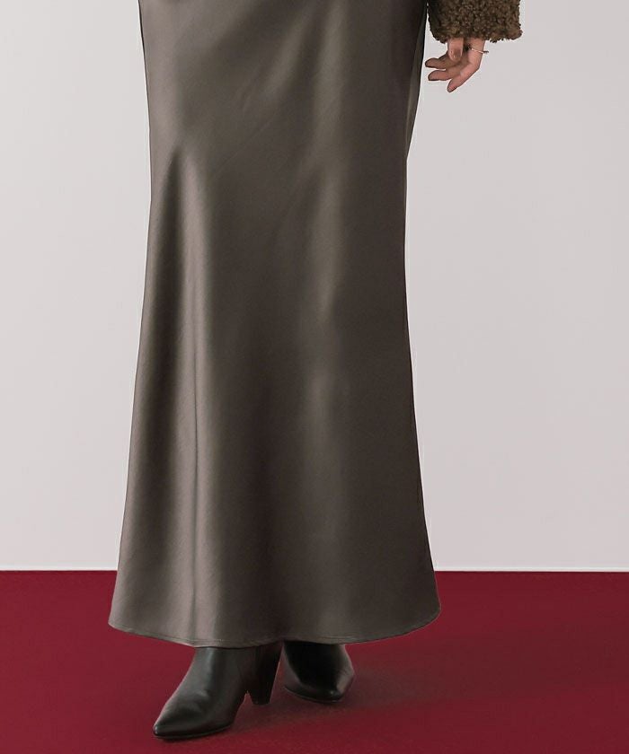 ヒップラインから綺麗なマーメイドラインを描くサテンマキシスカート。