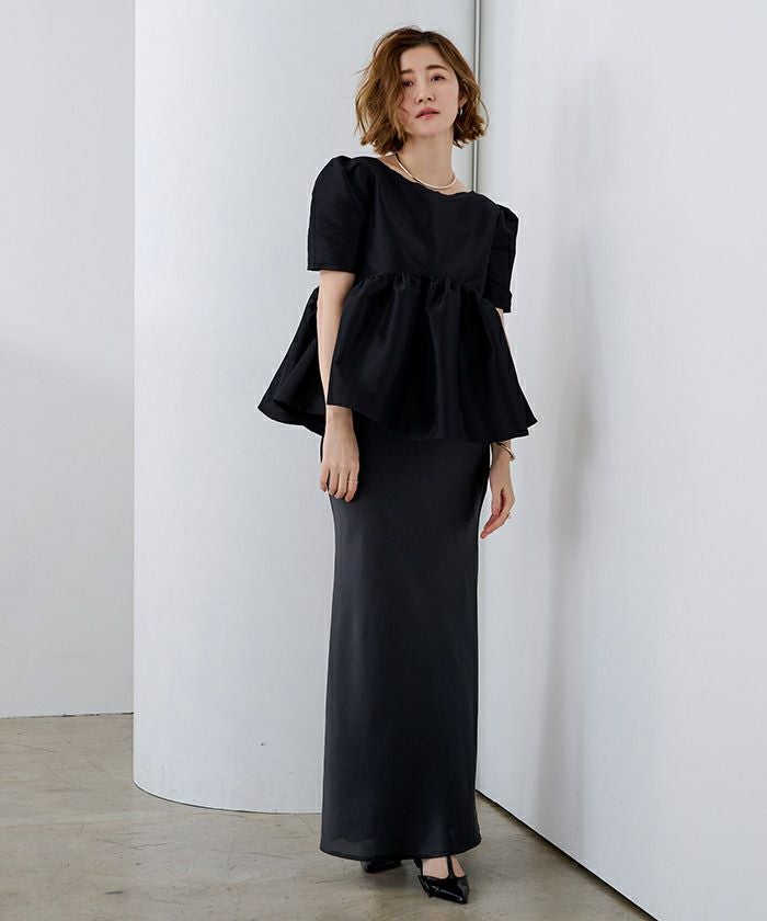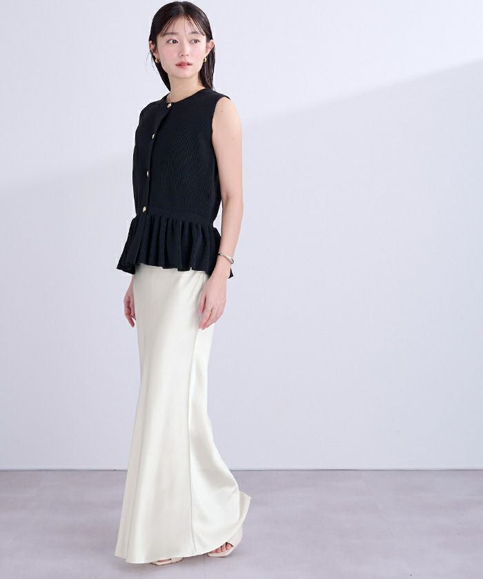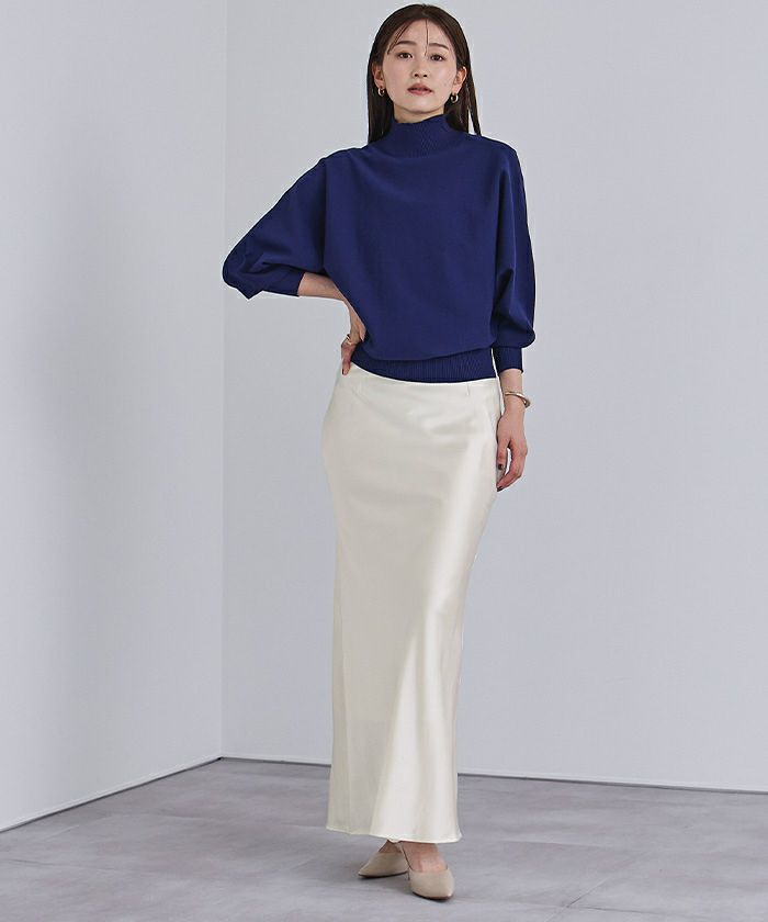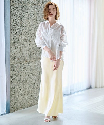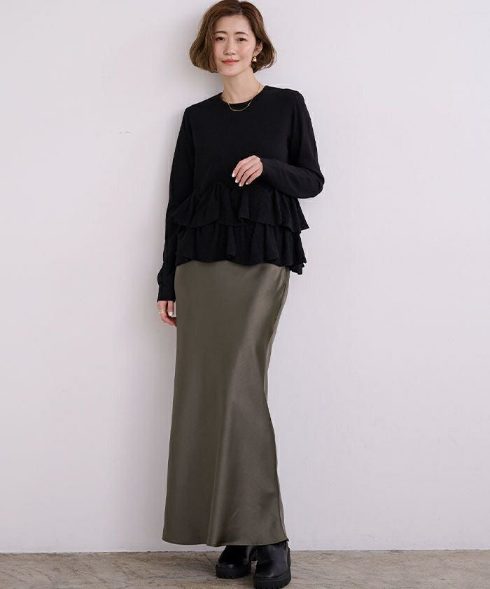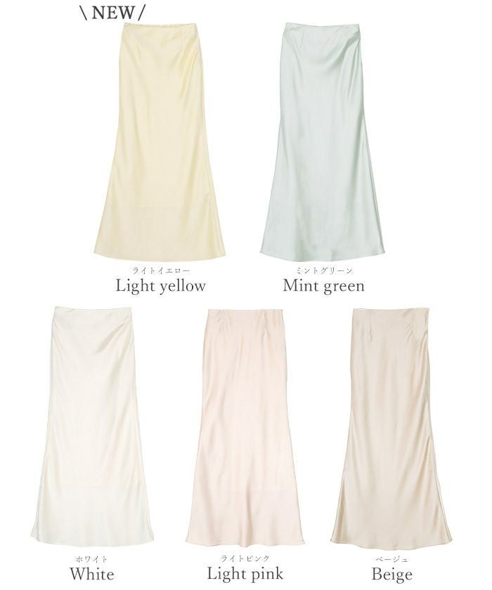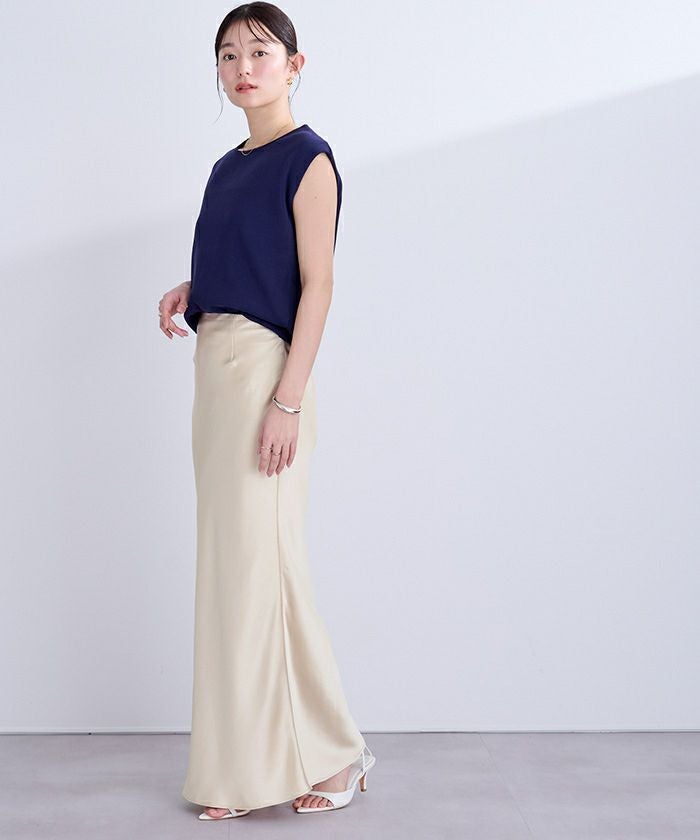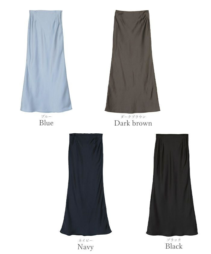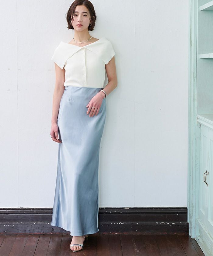 ヒップラインから綺麗なマーメイドラインを描くサテンマキシスカート。