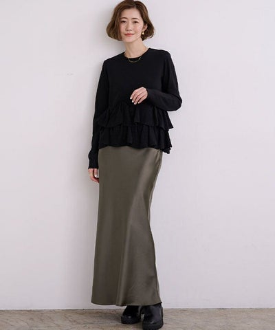 サテンならではの光沢感が上品で、きれいめな印象に仕上がります。