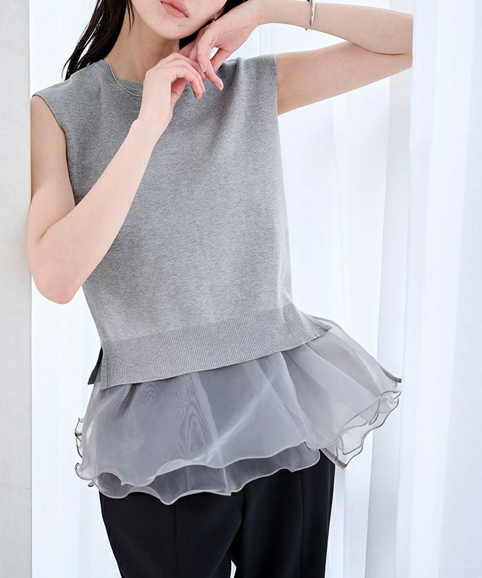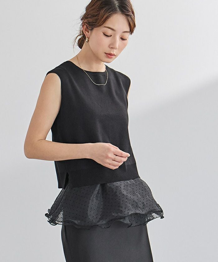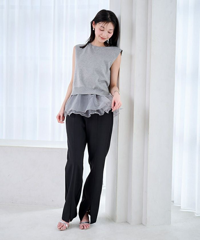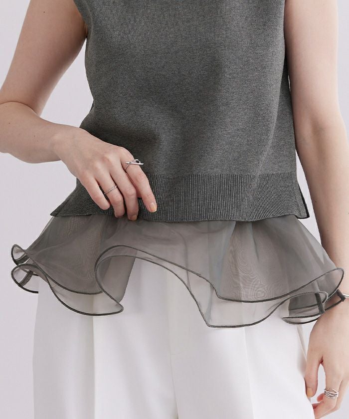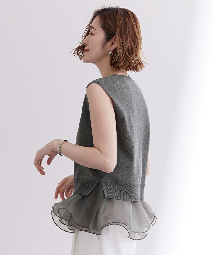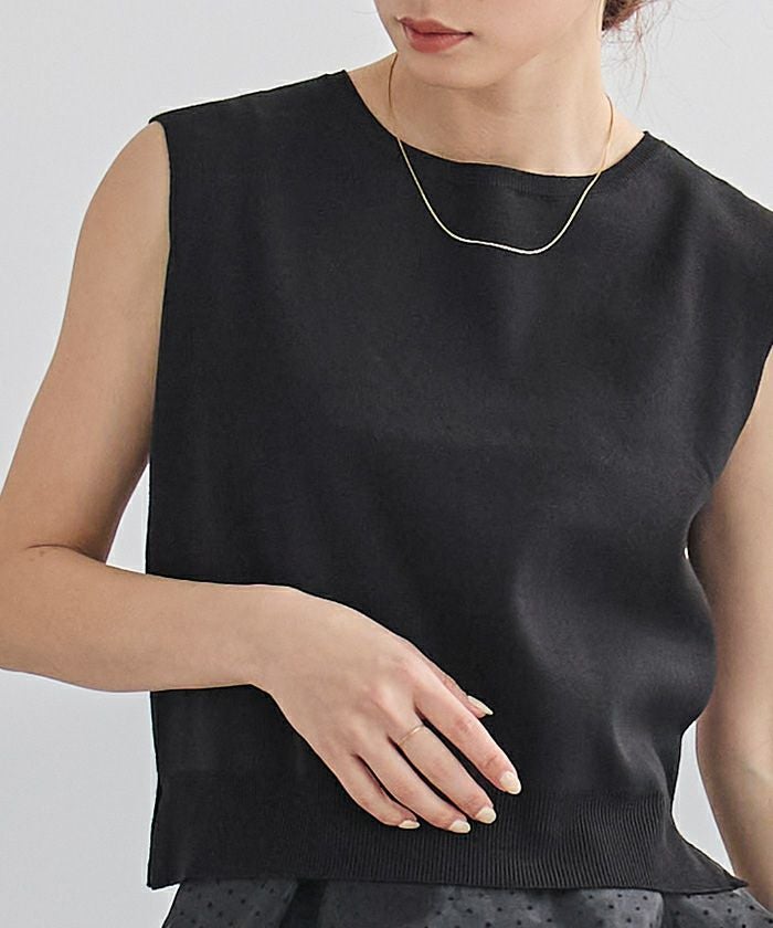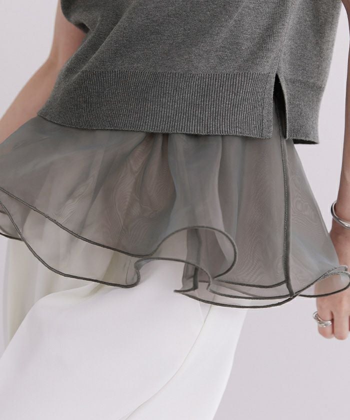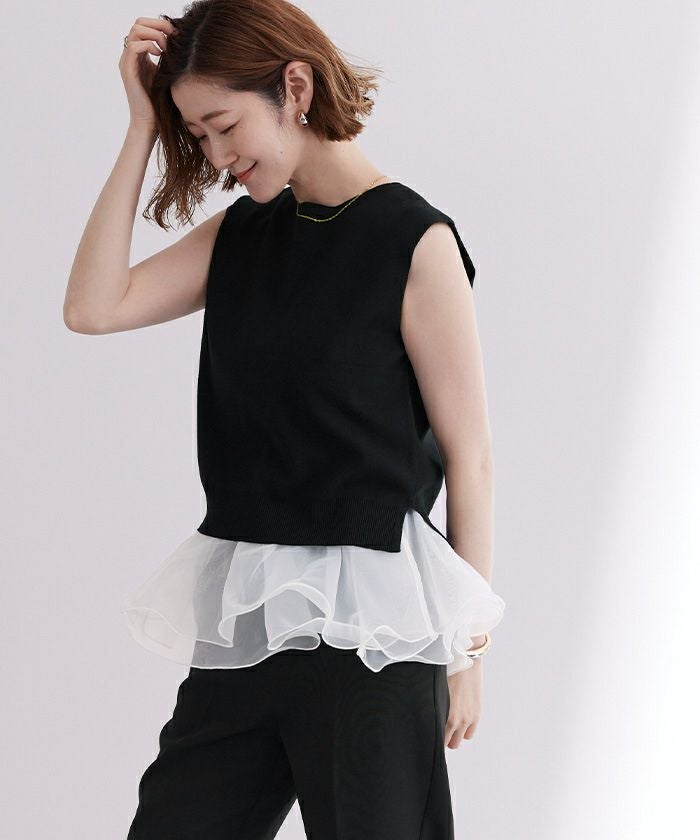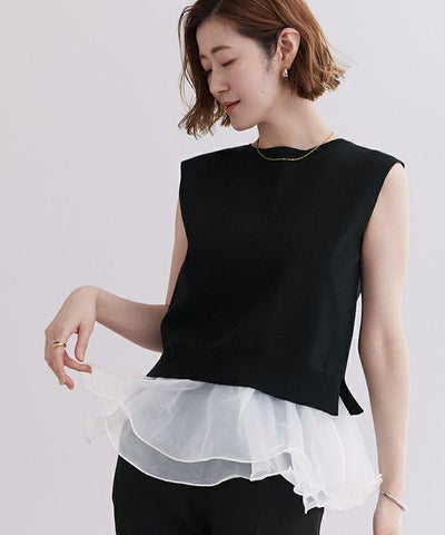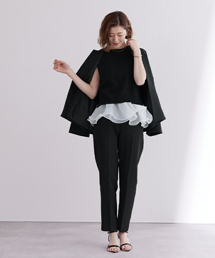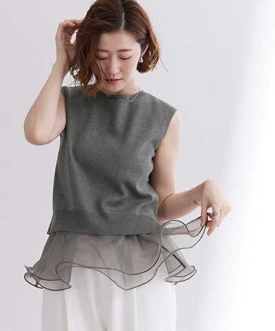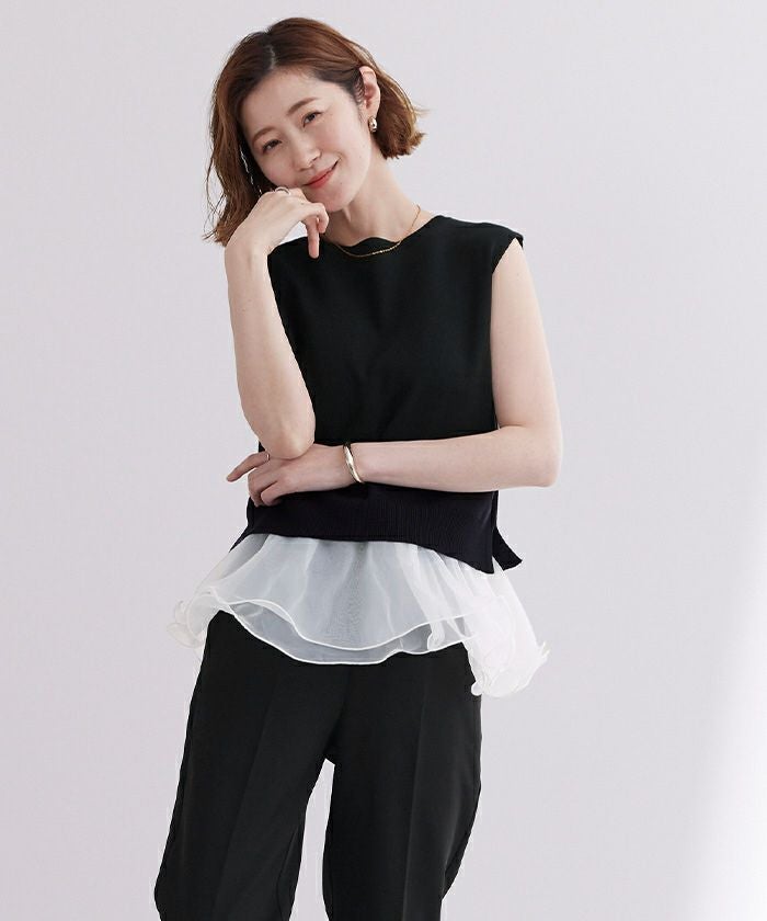 ニットはベーシックに仕上げ、1枚でも着られるのも嬉しいポイント。