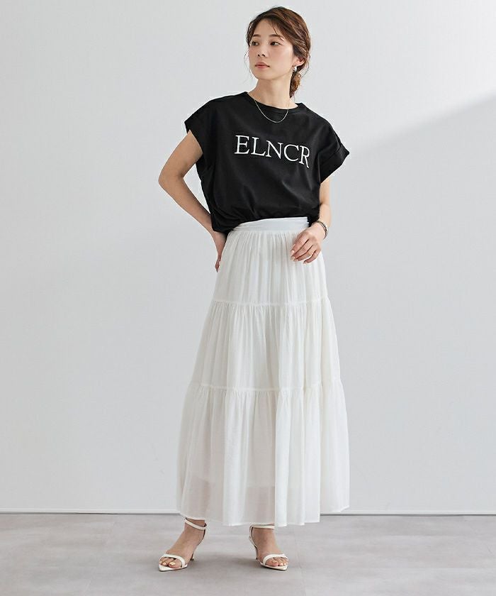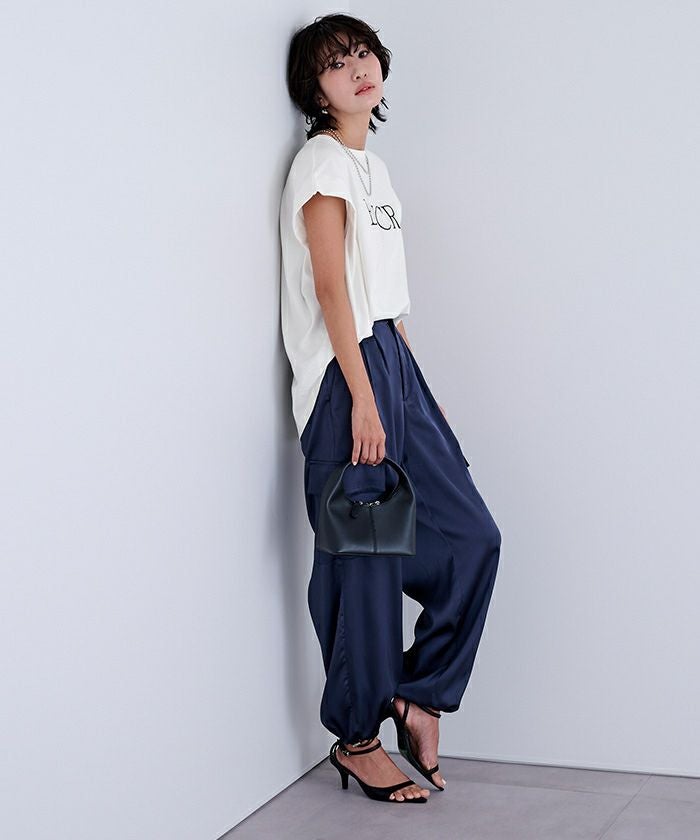 ロールアップデザインを施したフレンチスリーブが、二の腕をさりげなくカバーしてくれます。
