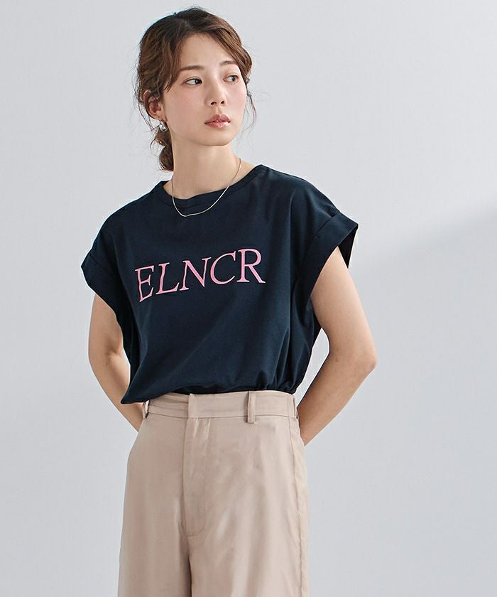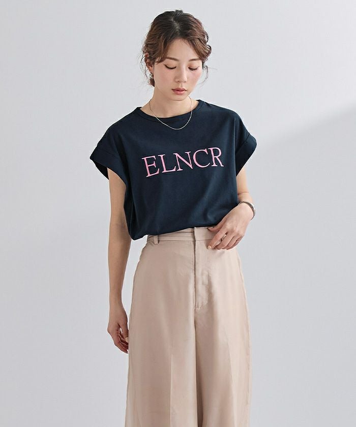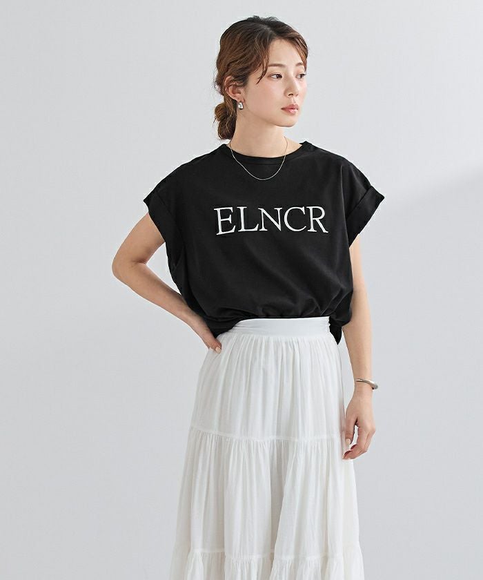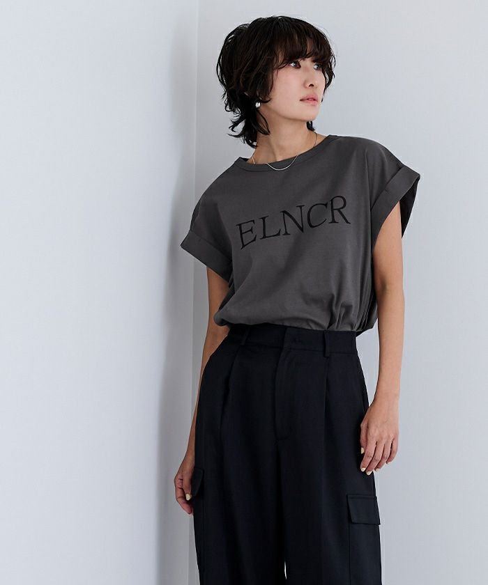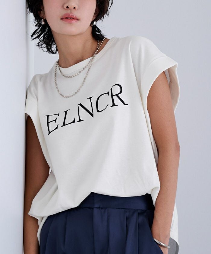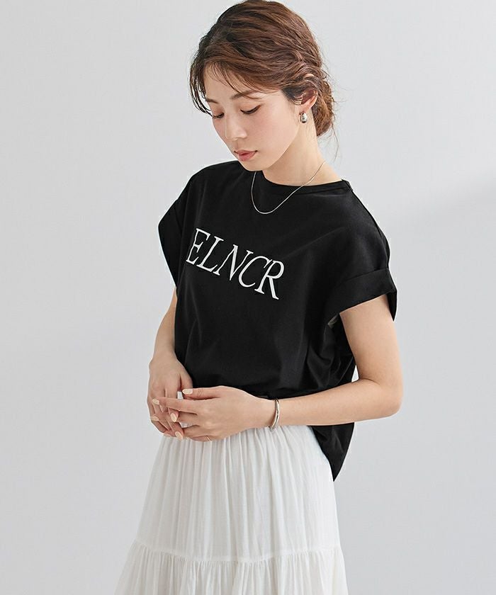フロントに施したロゴがアクセントになる、シンプルなデザインTシャツ。