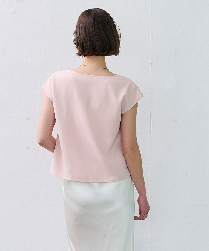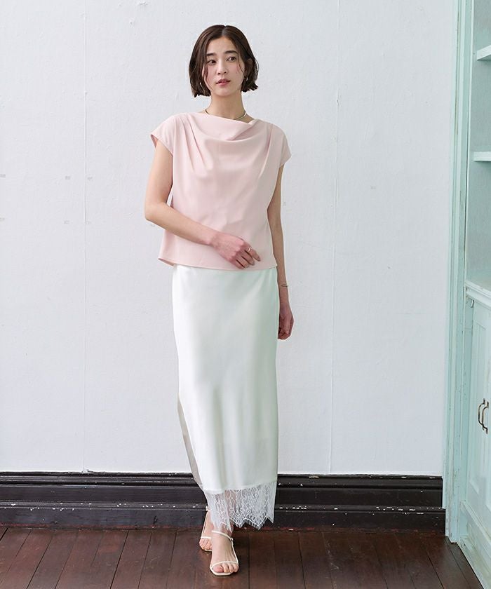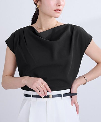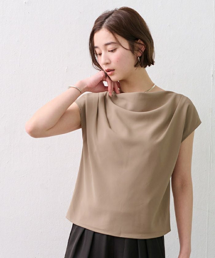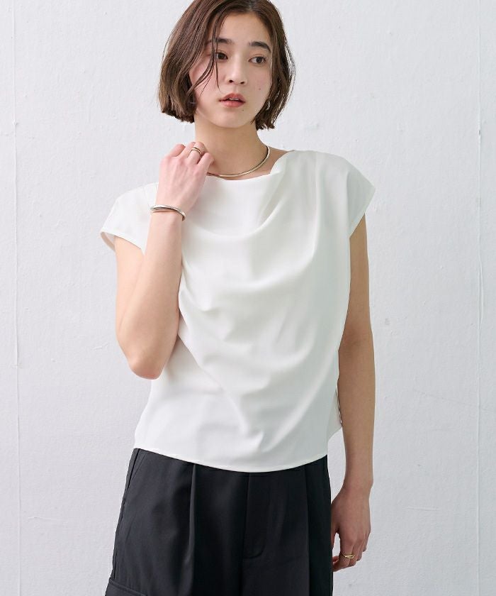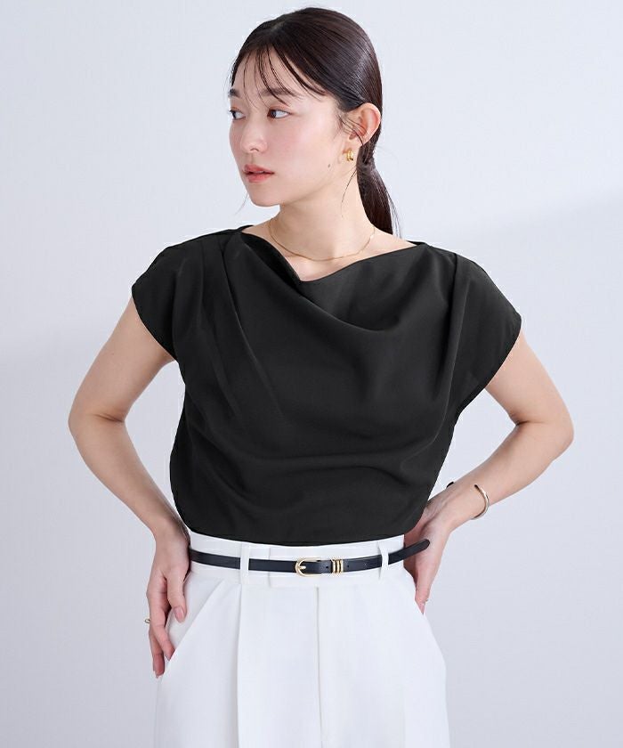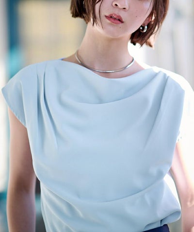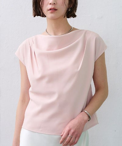 フロントの上品なドレープが、シンプルながら女性らしい印象を与えます。