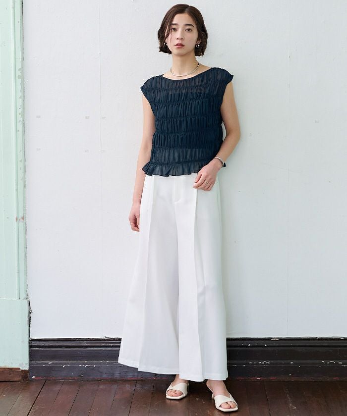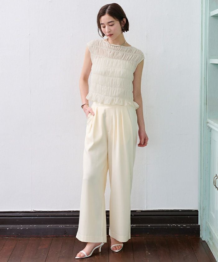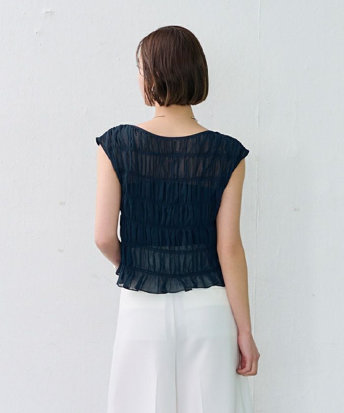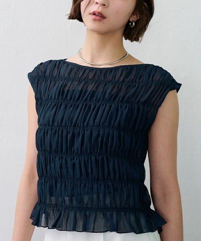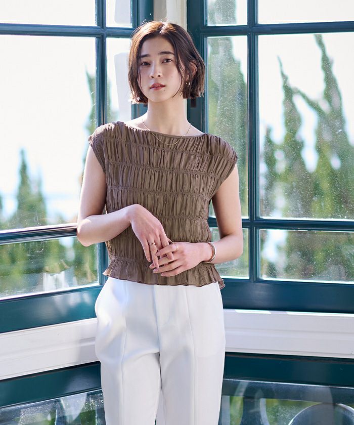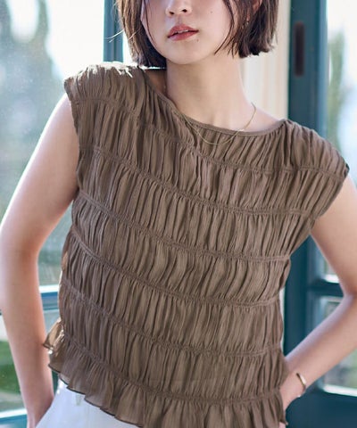 繊細なシャーリングを全体に施した、着映え感のあるブラウス。