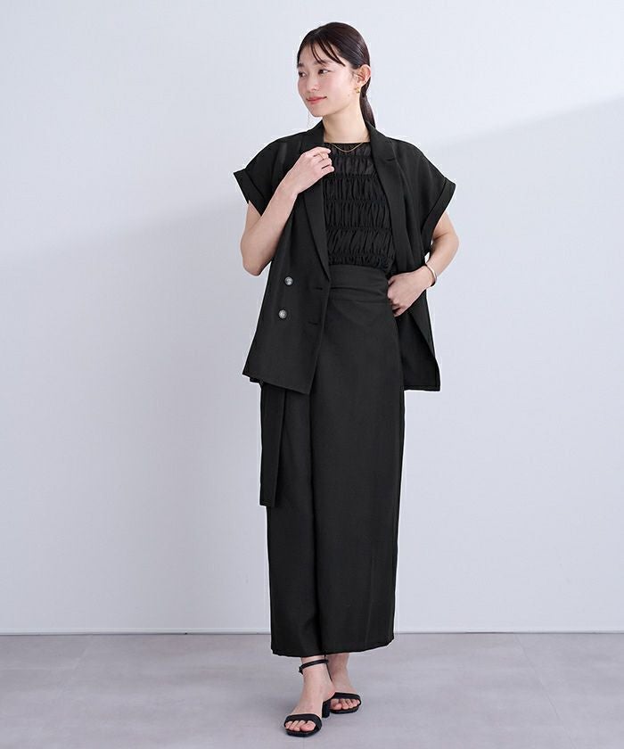 立体的なギャザーが華やかさをプラスしつつ、伸縮性があるため着心地は軽やか。