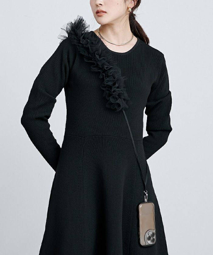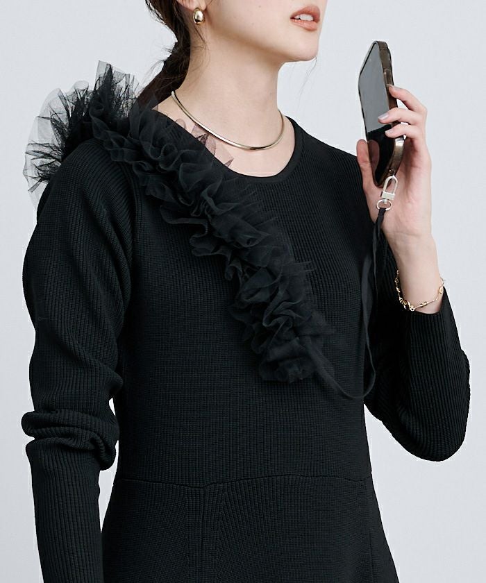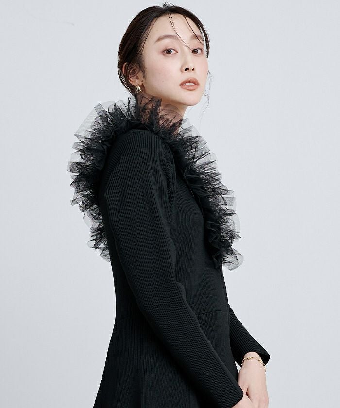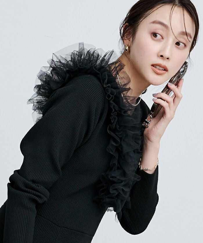 ハリ感のあるチュールレースを重ねたデザイン。