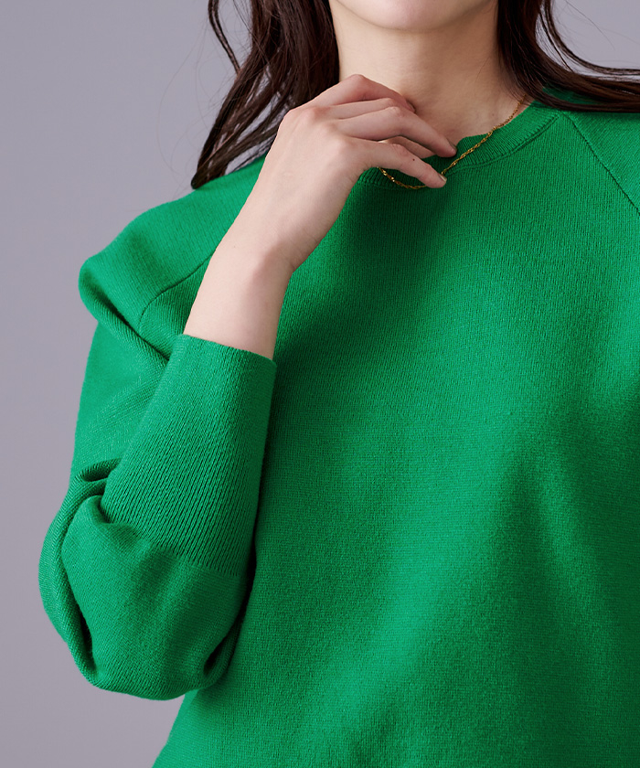 ニットでもハリのある編地で、身体のラインを拾いにくいのも嬉しいポイントです。