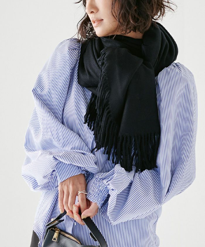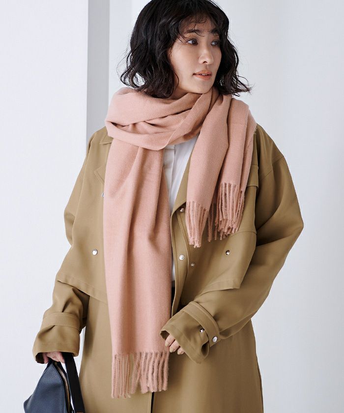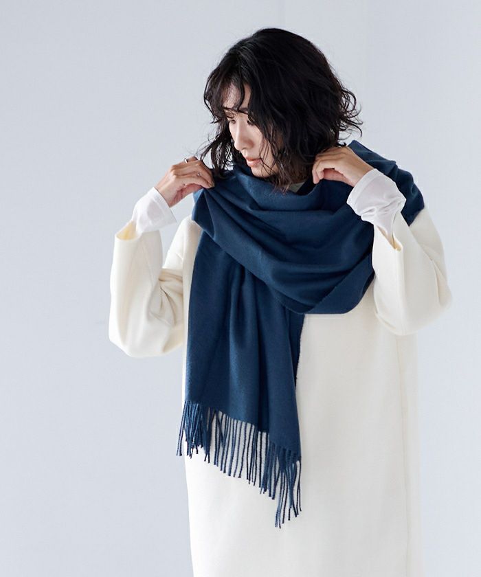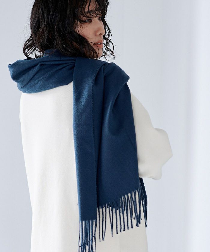 肌寒い季節に重宝する、肌触りの良い大判のカシミヤタッチストール。
