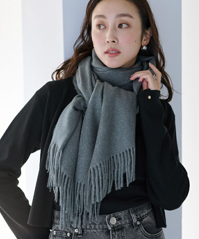 マフラーとして首に巻くのは勿論、大判なので肩掛けとしても活用出来る冬のマストバイアイテムです。