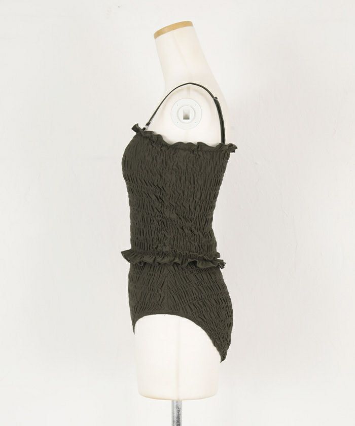 ワンピースライクに着こなせるシンプルデザインシャーリングビキニ。