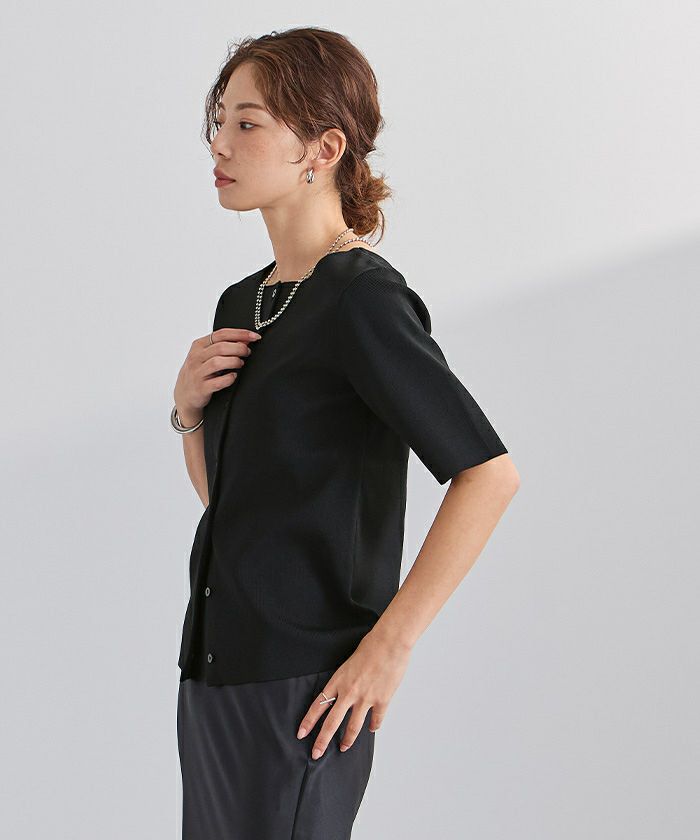 ボタンを前にしてカーディガン風にも、後ろにしてプルオーバーとしても楽しめます。