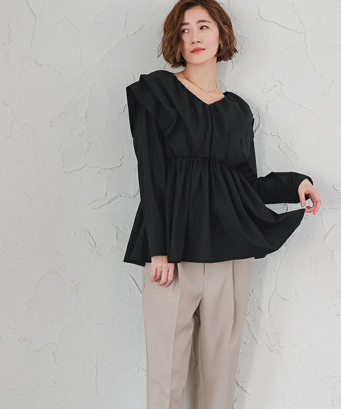 ショルダーにタックを入れ、立体感のある女性らしいシルエットに仕上げたブラウス。
