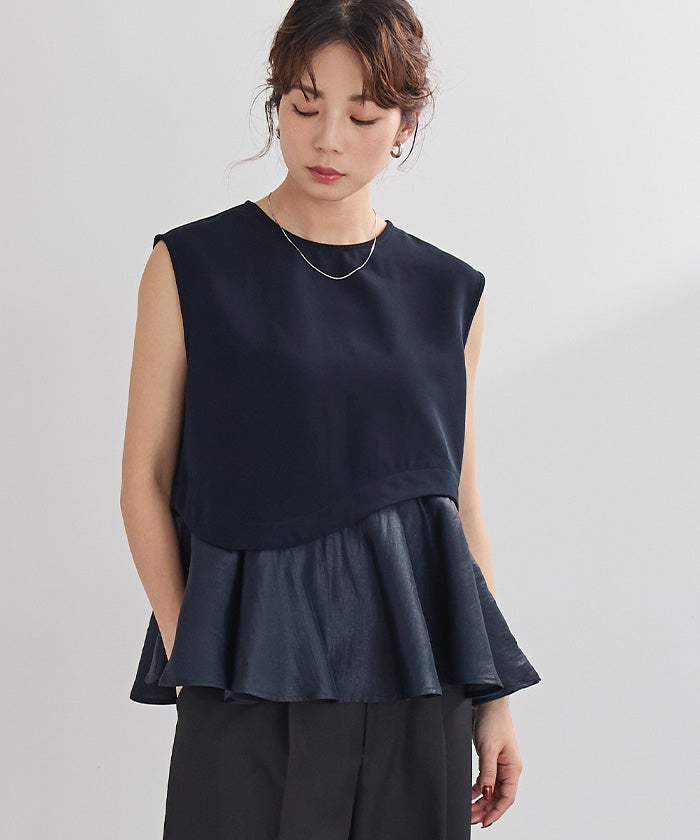 他の画像を見る 【新作★期間限定15%OFF★13日11時カラ】【イチ推し】 フリルヘムノースリーブブラウス【メール便可/100】 定価 ¥ 5,599 のところ 価格 ¥ 4,758 税込 販売期間 2026/03/13 11:00 〜 2026/03/23 10:59 お気に入りに登録する