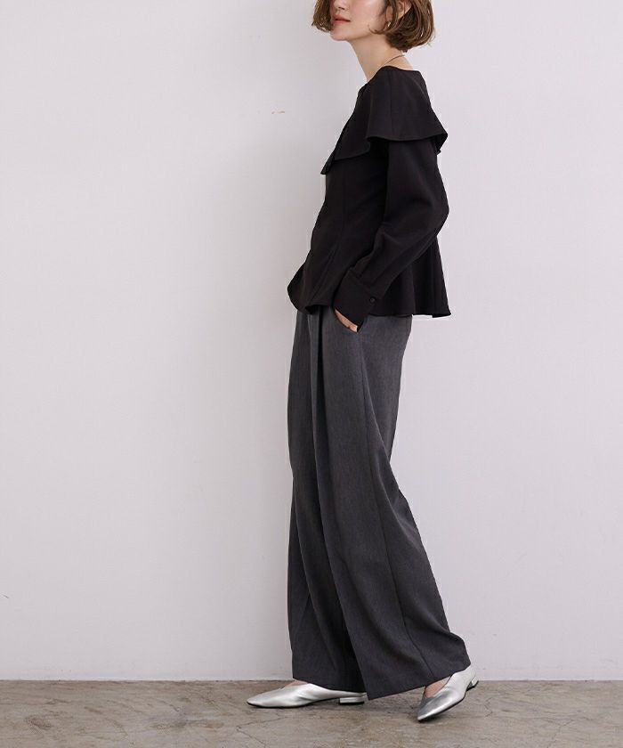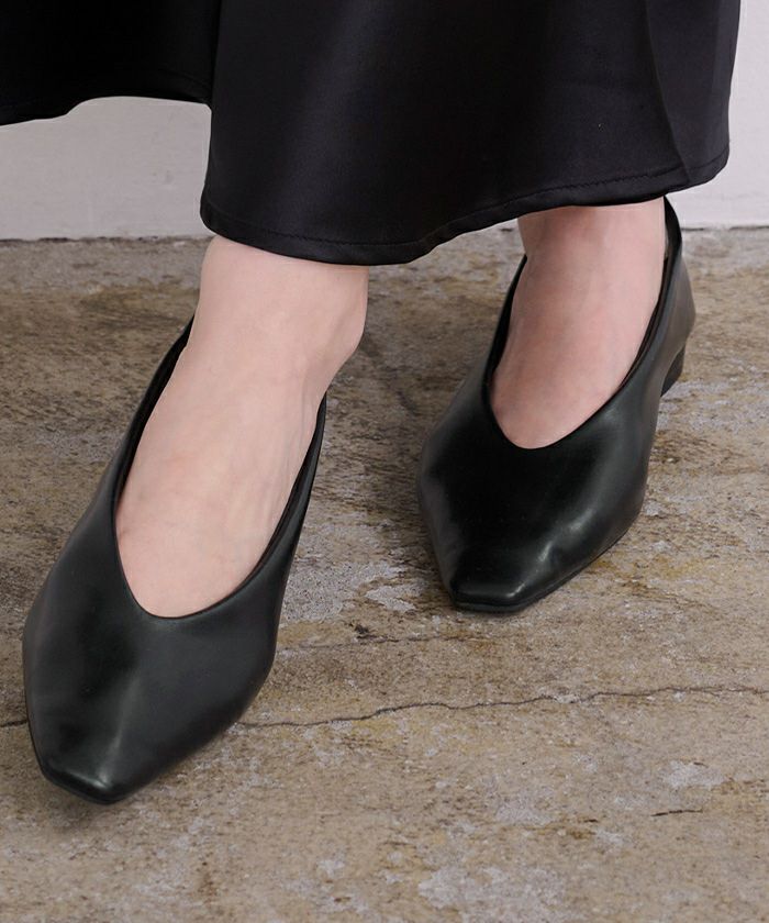 つま先が細めのスクエアトゥデザインが足元を綺麗に見せてくれます。