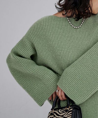 ・ボートネックと広めの袖口で、フェミニンな印象を与えます。