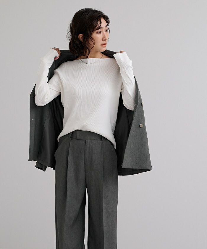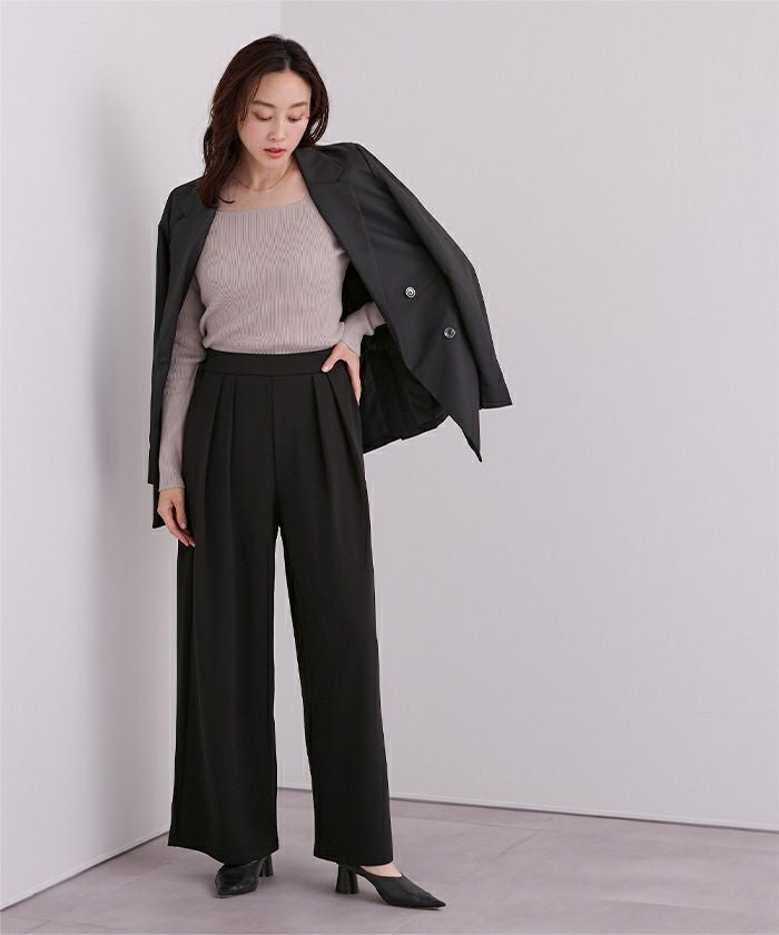 センタープレスタックワイドパンツ