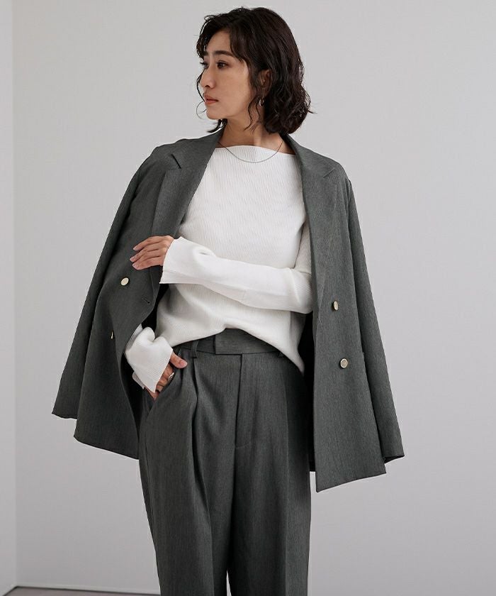 パンツと合わせればすっきりとしたハンサムなコーディネートが完成。