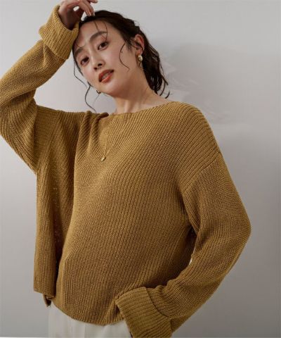 オーバーなサイズ感で抜け感溢れるボートネックニット。