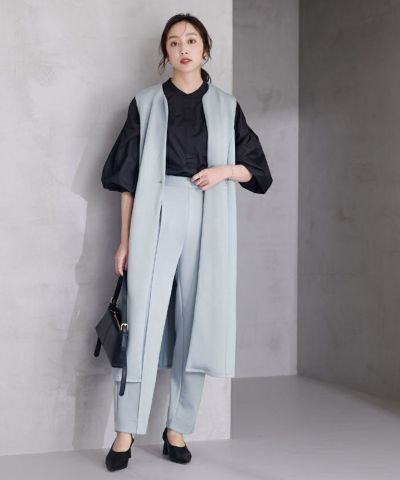 タートルネックやブラウス等、中に合わせるアイテムで着こなしに変化がつけられます。