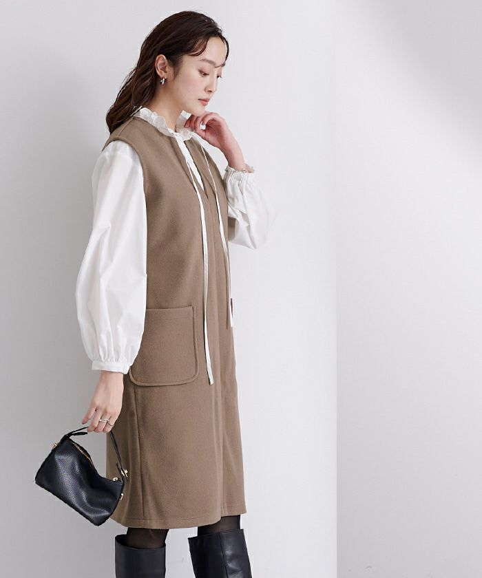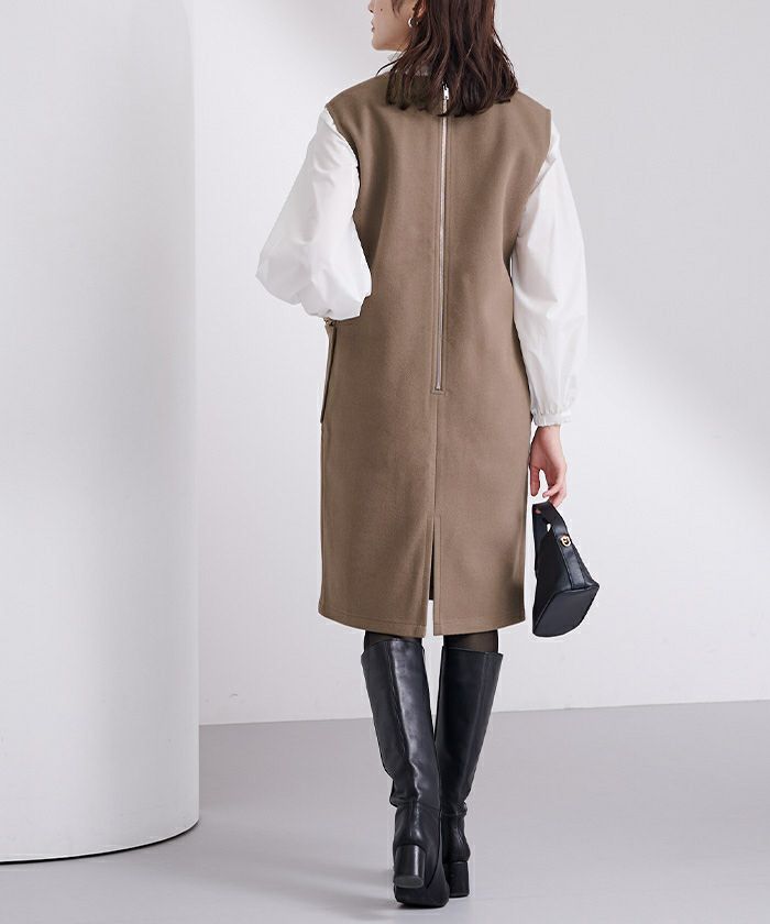 後ファスナー開きで着脱しやすく、こなれ感をプラス。