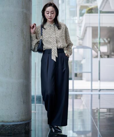 ダルメシアン柄のプリントが一枚で存在感のあるブラウス。