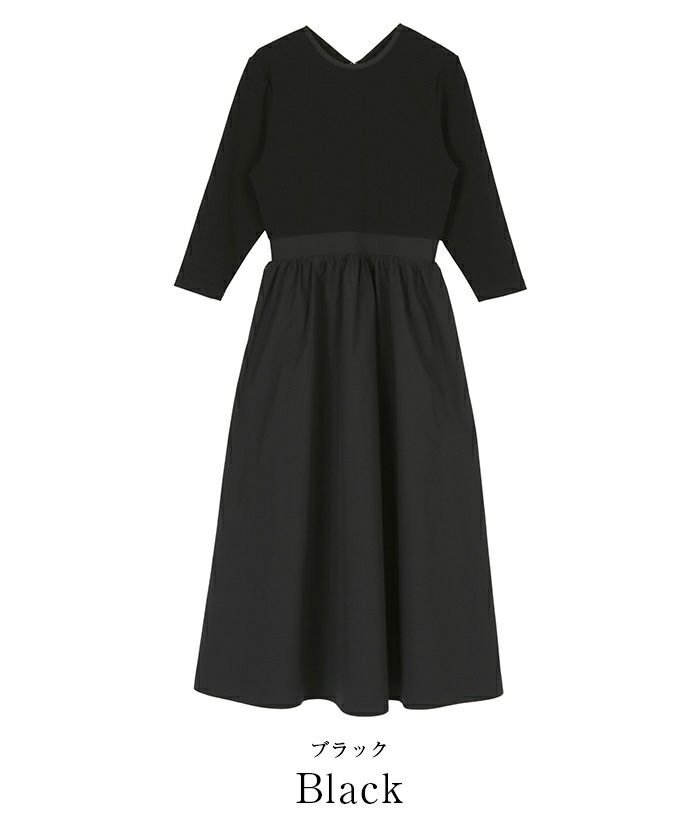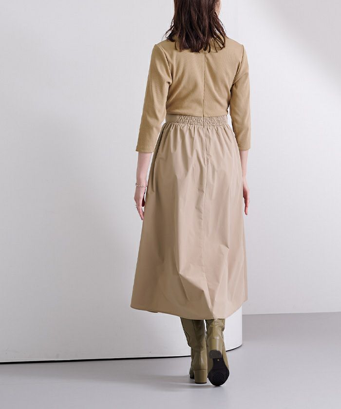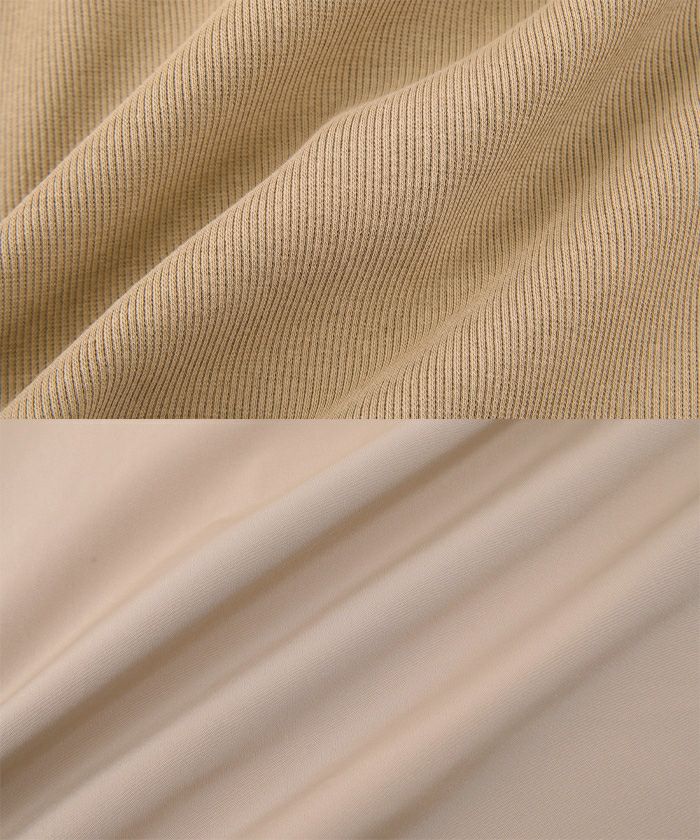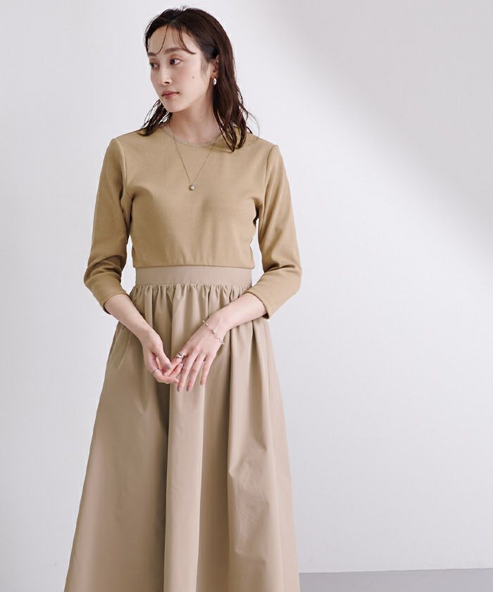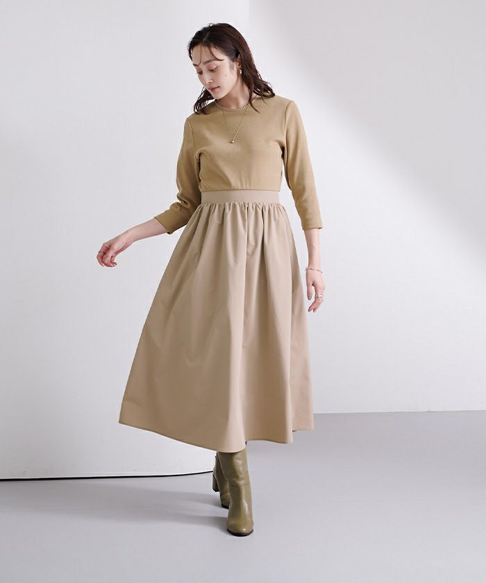 身頃部分はテレコリブの素材でスカート部分は布帛を使用。