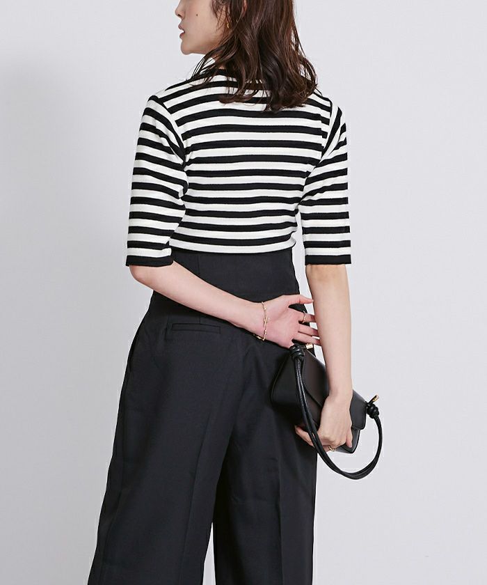 ハーフスリーブのシンプルなニットトップス。