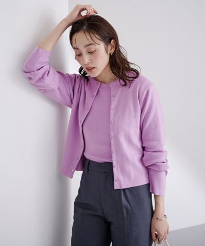 アンサンブルで着られるカーディガンと合わせるのもおすすめです。