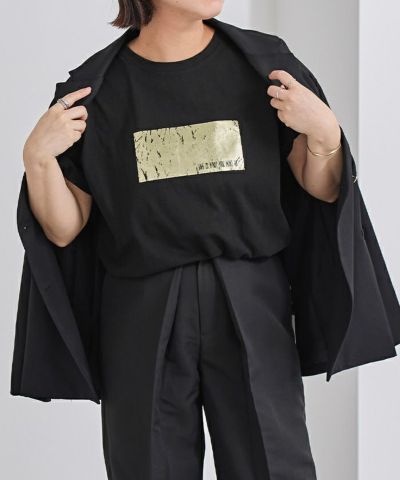 箔プリントデザインのTシャツ。
