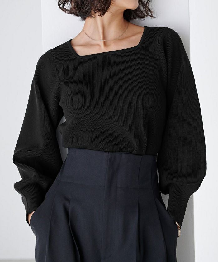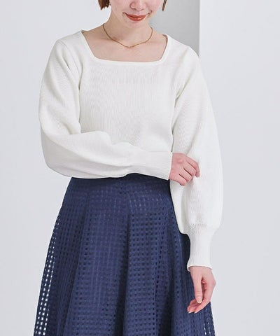 構築的なフォルムで今年らしいボリュームスリーブがポイントのニット。