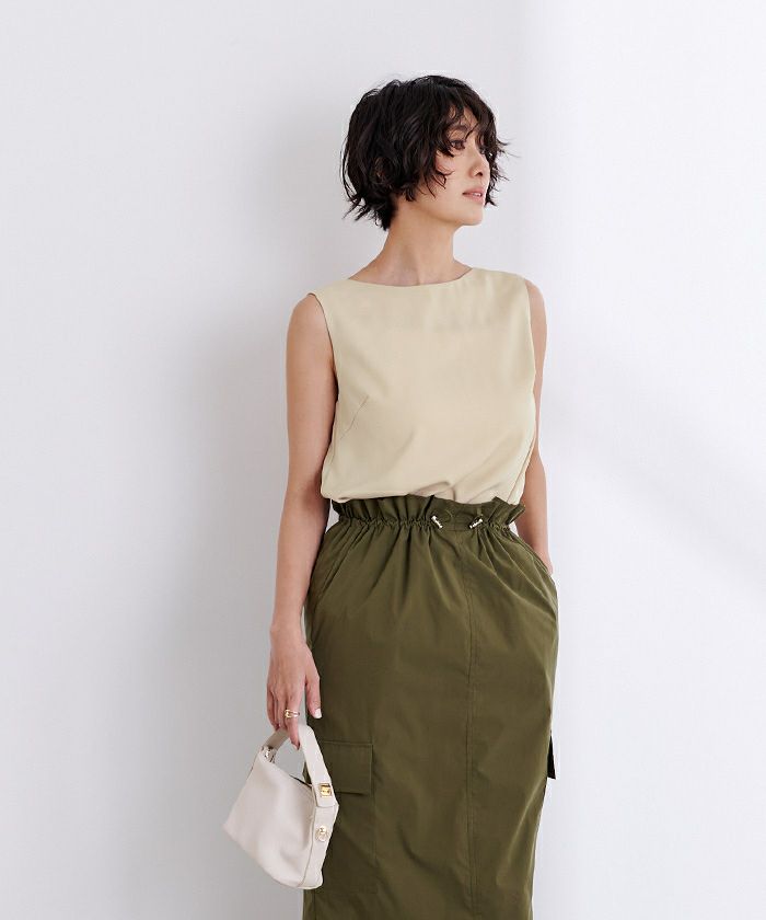 前後でネックのデザインが違い前はボートネックでより女性らしい印象になります。