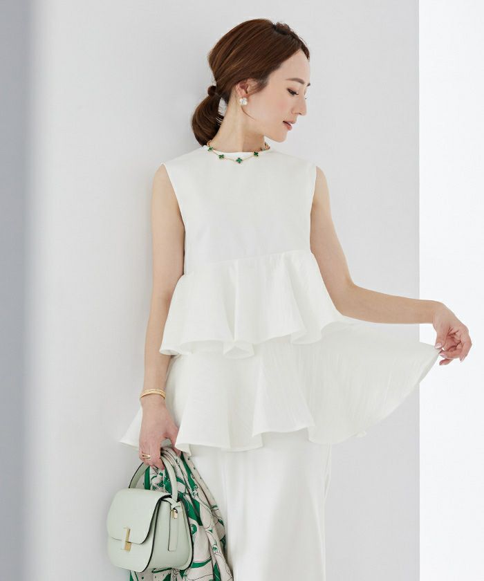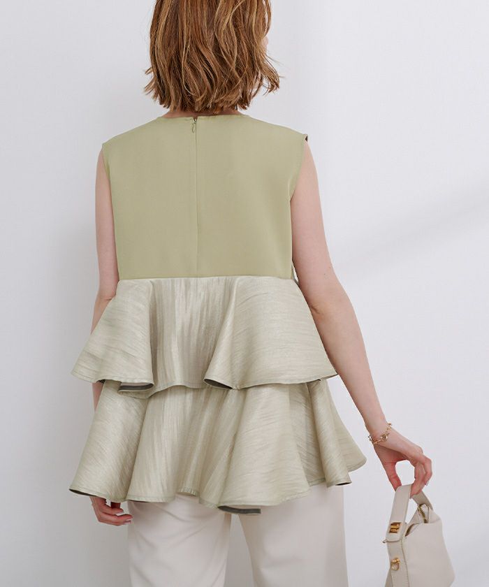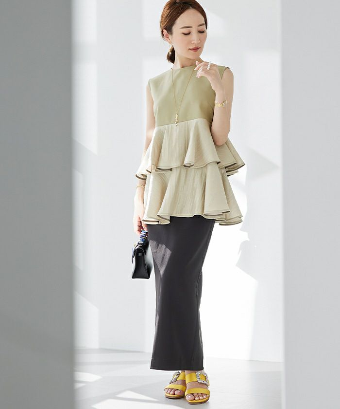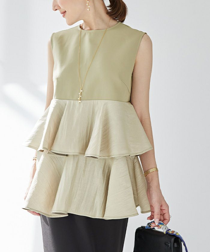 光沢のある素材をティアード部分に使用して華やかな印象に。