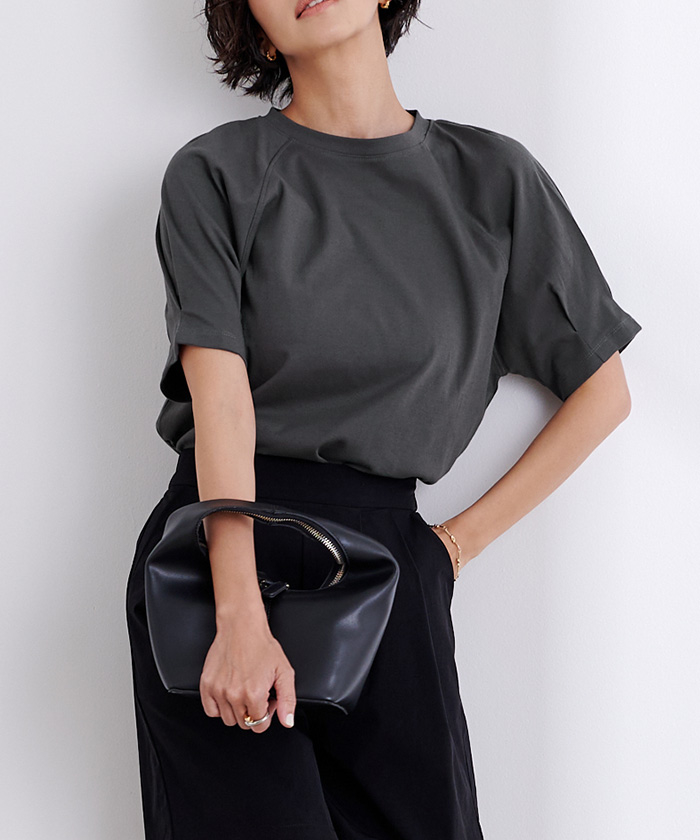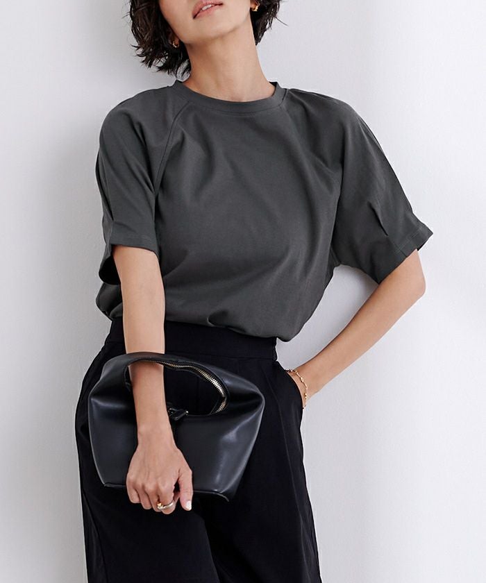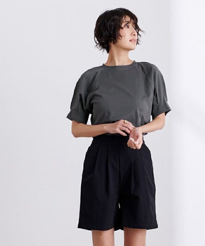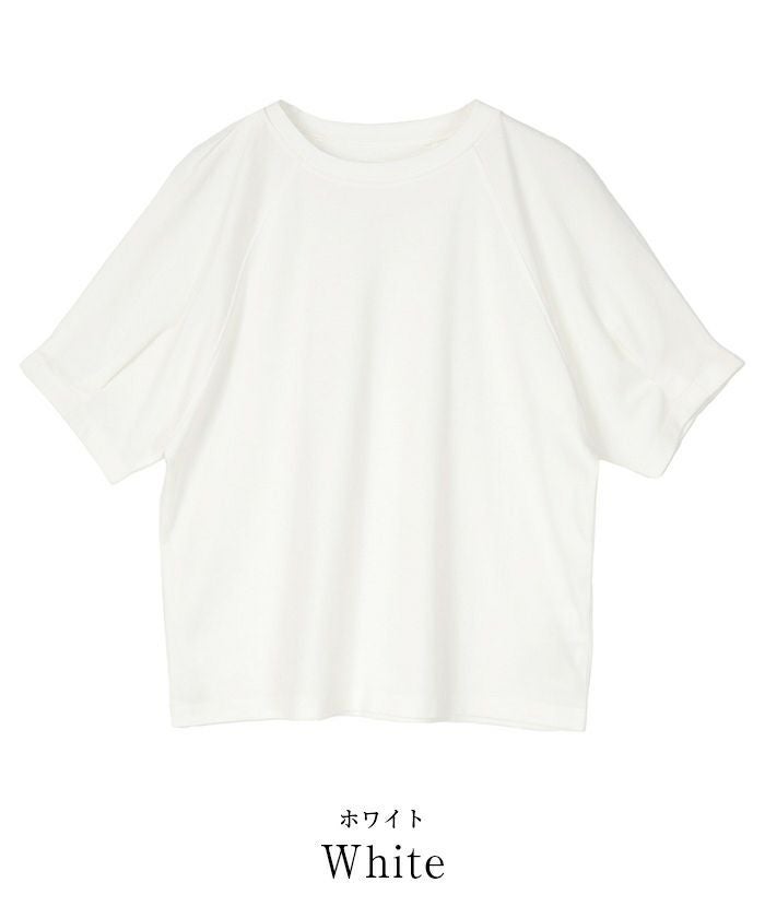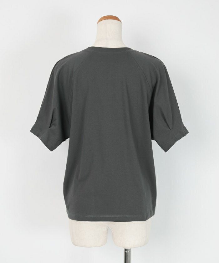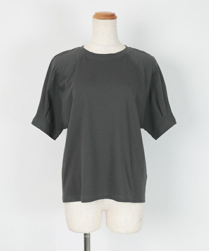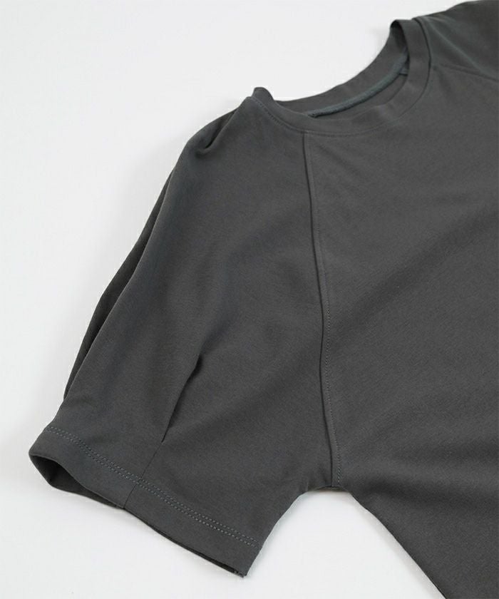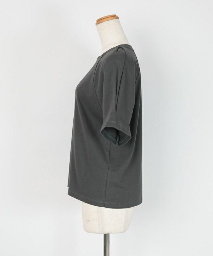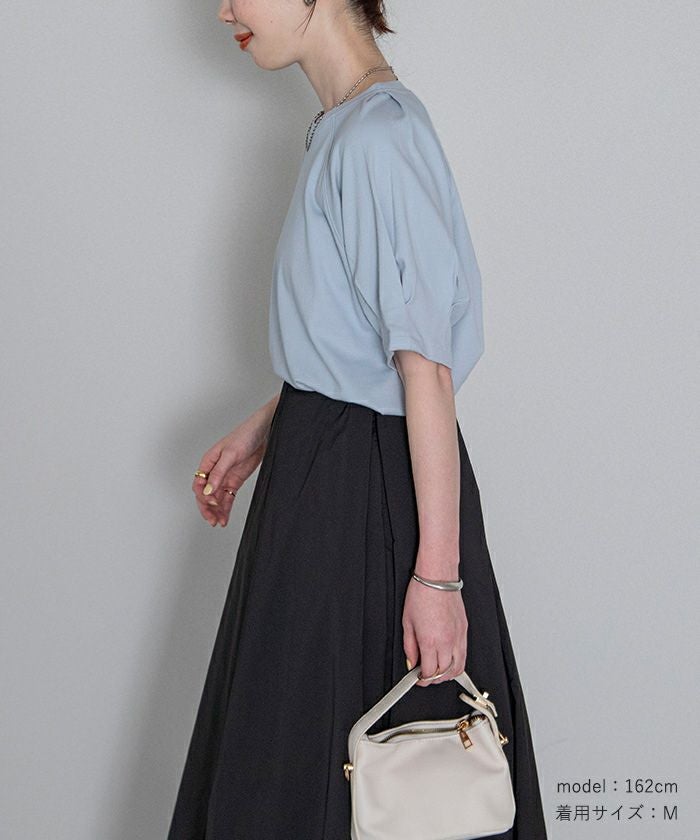 夏にぴったりな汗染みが軽減できる素材のボリュームスリーブTシャツ。
