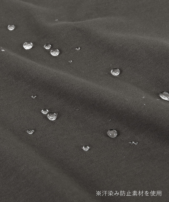 素材の特性上、汗染み防止加工は洗濯を繰り返すことや長期使用により、徐々に効果は低下いたします。予めご了承下さい。