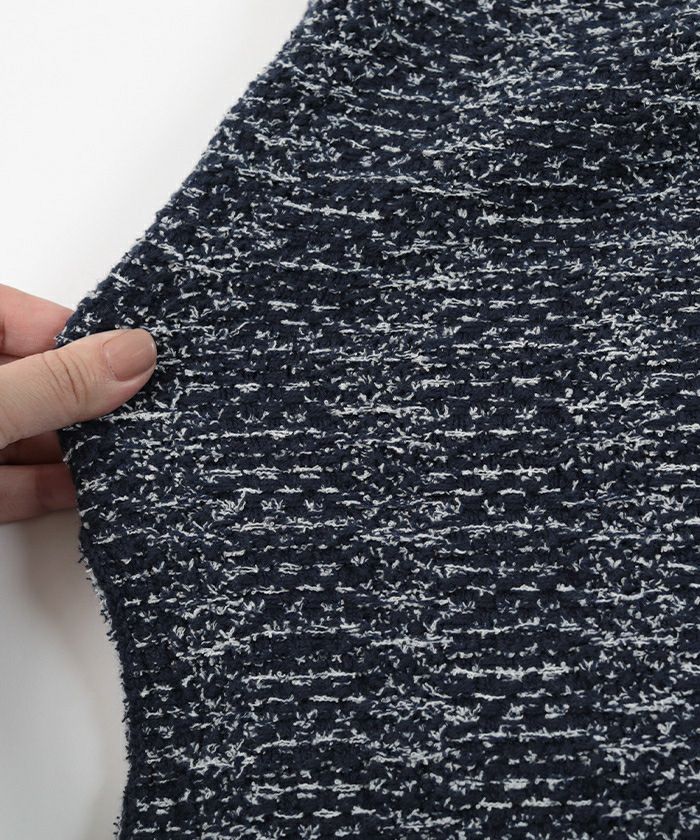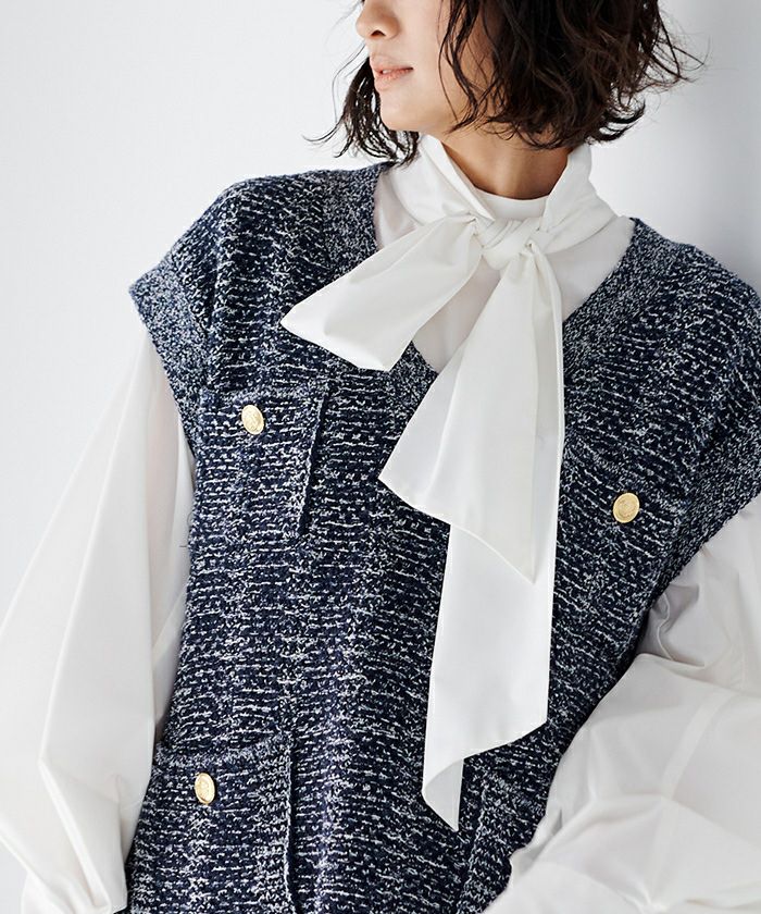 ベーシックなシルエットをツイードニットにした大人ベスト。