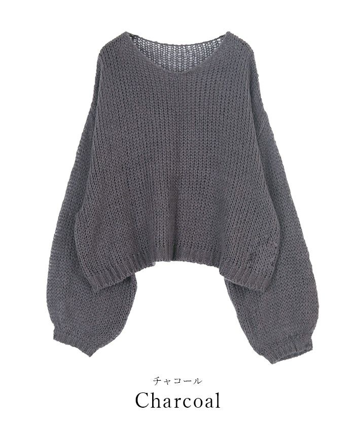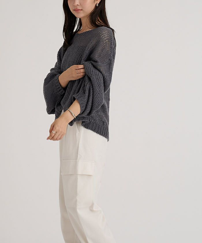・ざっくりした編地で、華奢見せを叶えるゆったりしたボリュームスリーブ。